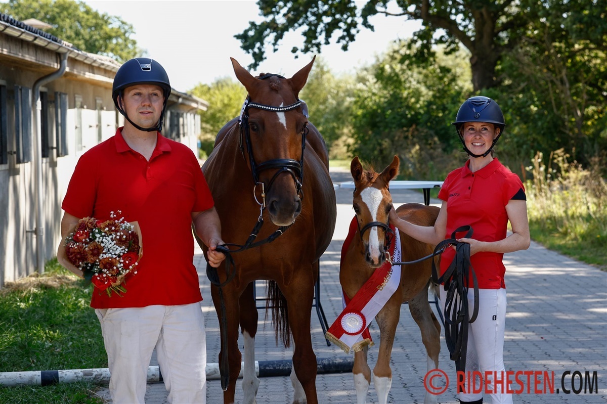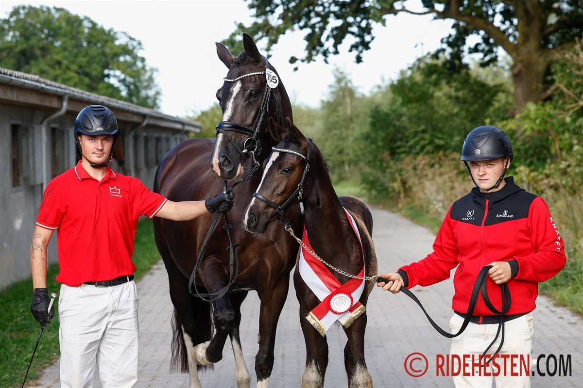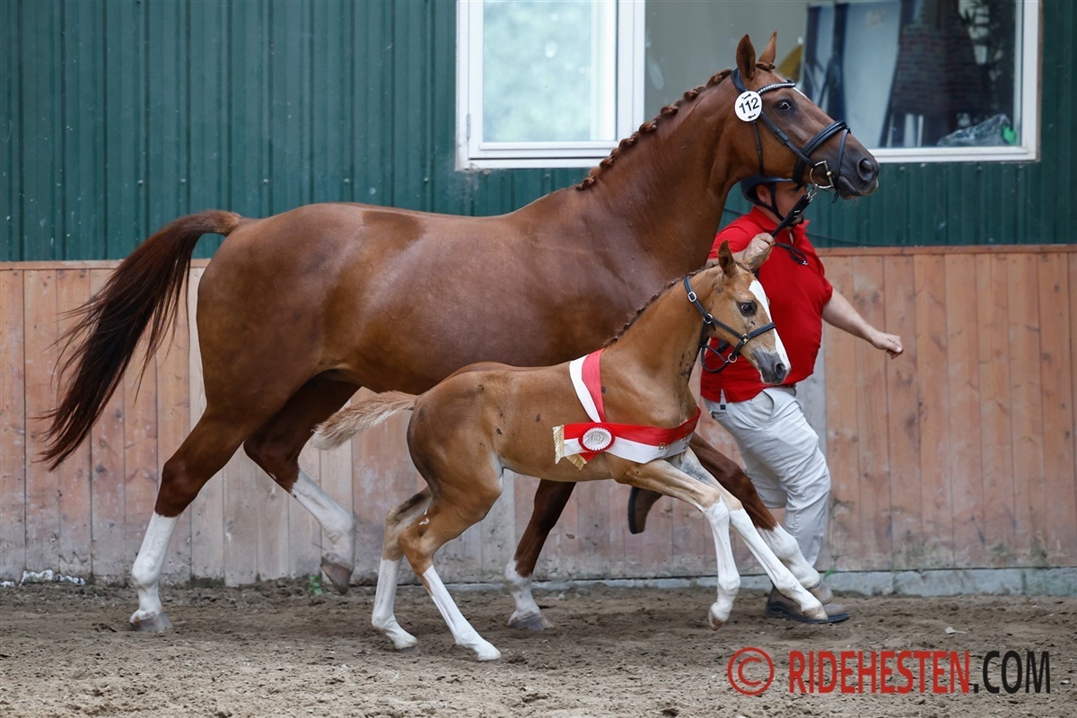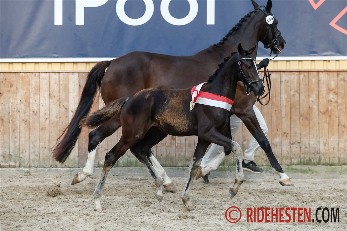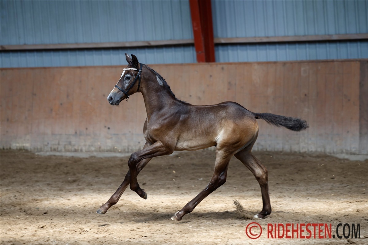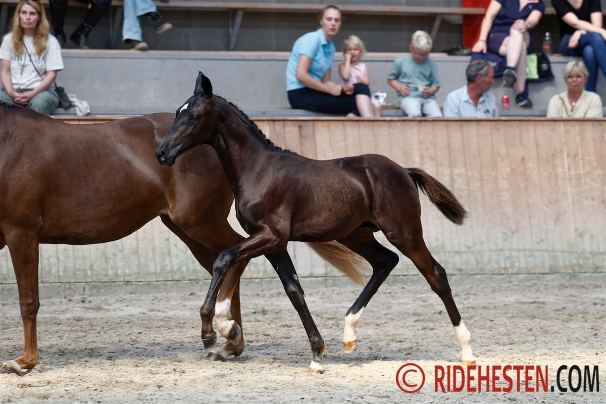 Et hingsteføl, vi var meget begejstrede for. Han er storrammet med gode partier, har et herligt maskulint præg og er meget udtryksfuld. Halsen er velansat og velformet, og skulderen er lang, skrå og velplaceret. Han står på korrekte og velmarkerede lemmer. Føllet opnåede dagens højeste galopkarakter på 9 for en galop præget af balance, rummelighed, power og aktion.