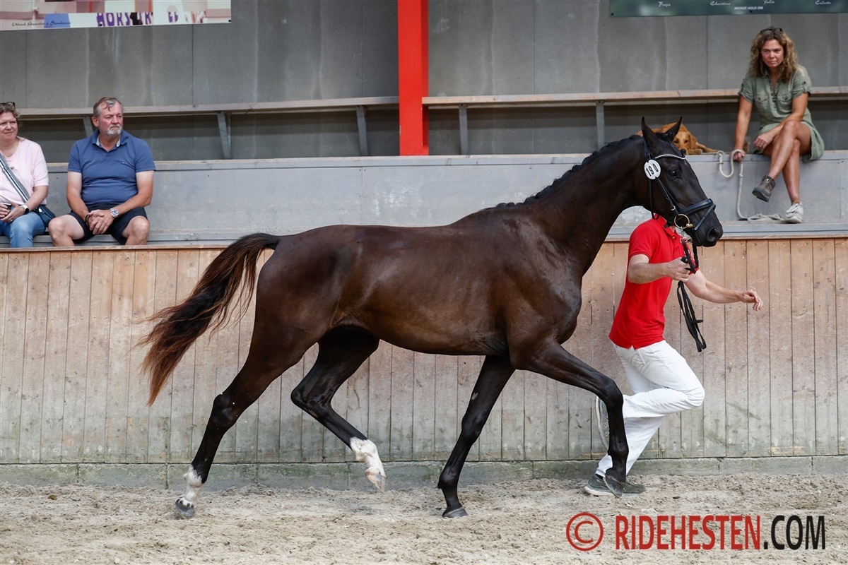 En 2-års vallak, der stadig bærer præg af alderen. Han er måske en smule til den smalle side, men har store rammer, er passende ædel og har et dejligt udtryk. Han viser særdeles god og rummelig bevægelse i alle tre gangarter.
