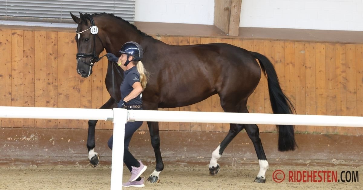 Guldmedaljehoppen Brandtbjergs Divya var helt overlegen og fuldstændig upåvirket af al virakken. Hun var fokuseret på Anders Hoeck, som leverede en overlegen mønstring for dyrlæger og dommere. Alle dansk varmblodsheste gik glat igennem, og nu får hestene et par timers pause i stalden, inden opvisningsbanen åbnes for træning.