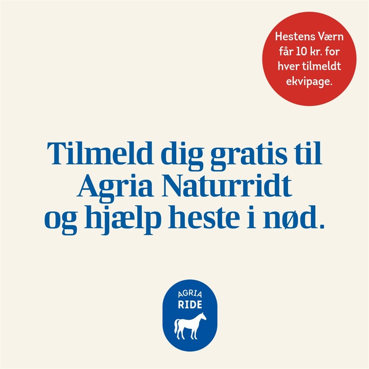 Det er gratis at deltage, og for hver ekvipage donerer Agria 10 kroner til Hestens Værn.