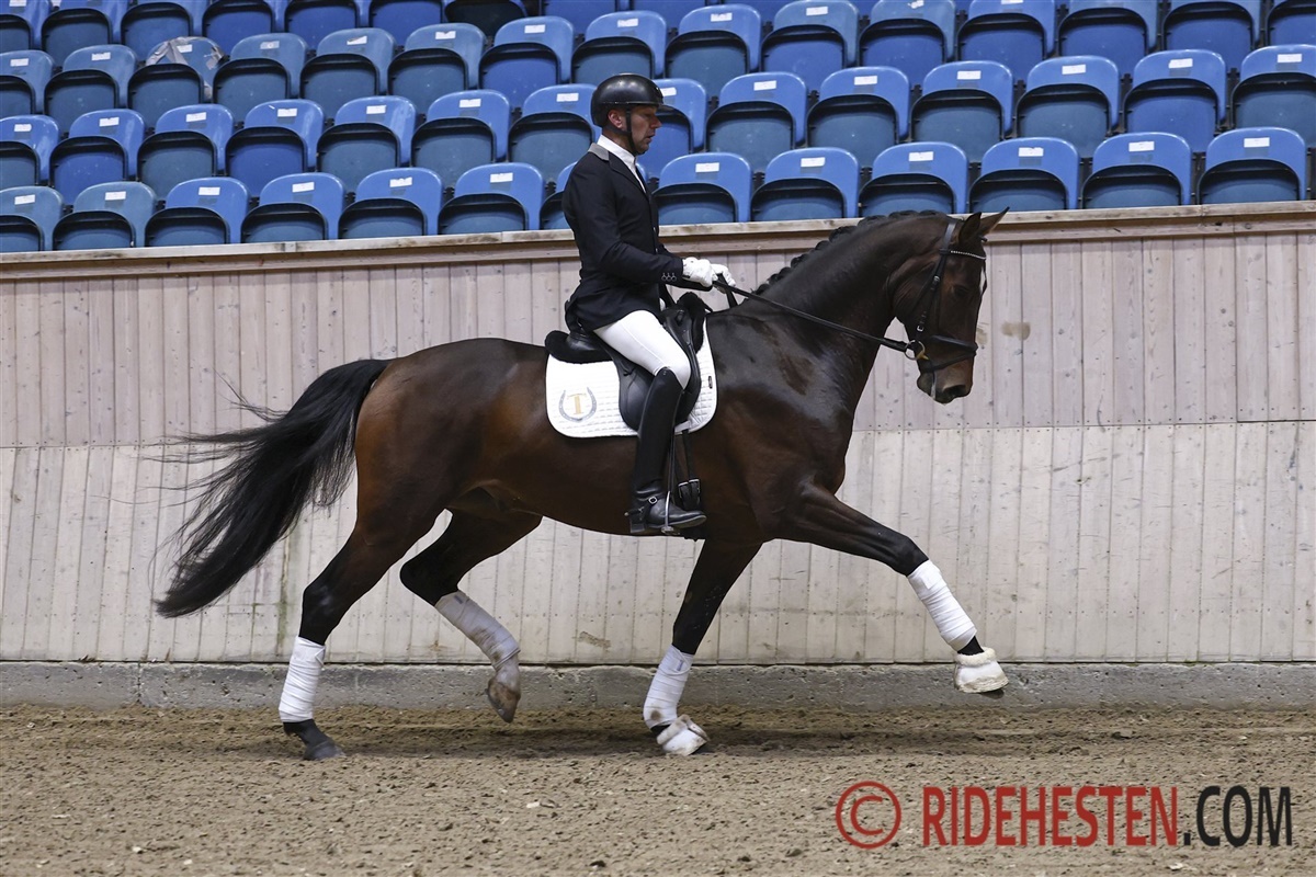Anders Hoeck red bronzemedaljehoppen Stenkærgårds Plasini e. Janero Platinum/Uphill ind på tredjepladsen. Han er selv ejer af hoppen, der er opdrættet af Helle Skelde. Dommerne gav parret 8,5 i samtlige karakterer og dermed 850 points.