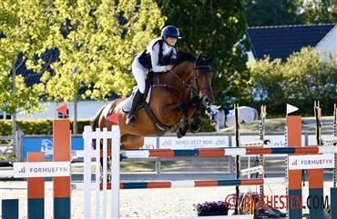 Derudover fortæller Cecilie lidt om, hvordan det er at ride Coldstream. For selvom han er stor, er han følsom, så fokus er på så vidt muligt ikke at forstyrre ham for meget på banen. Hvis man lykkes med det, er han til gengæld nem og sød, og det blev da også til en fejlfri runde til ekvipagen i MB* ved Christmas Show Warm Up. Sammen har ekvipagen tidligere debuteret i 130 cm og startet deres første internationale stævner. Hvad fremtiden bringer vides ikke, men en ting er sikkert: ”Tårnet” skal blive hos Cecilie.