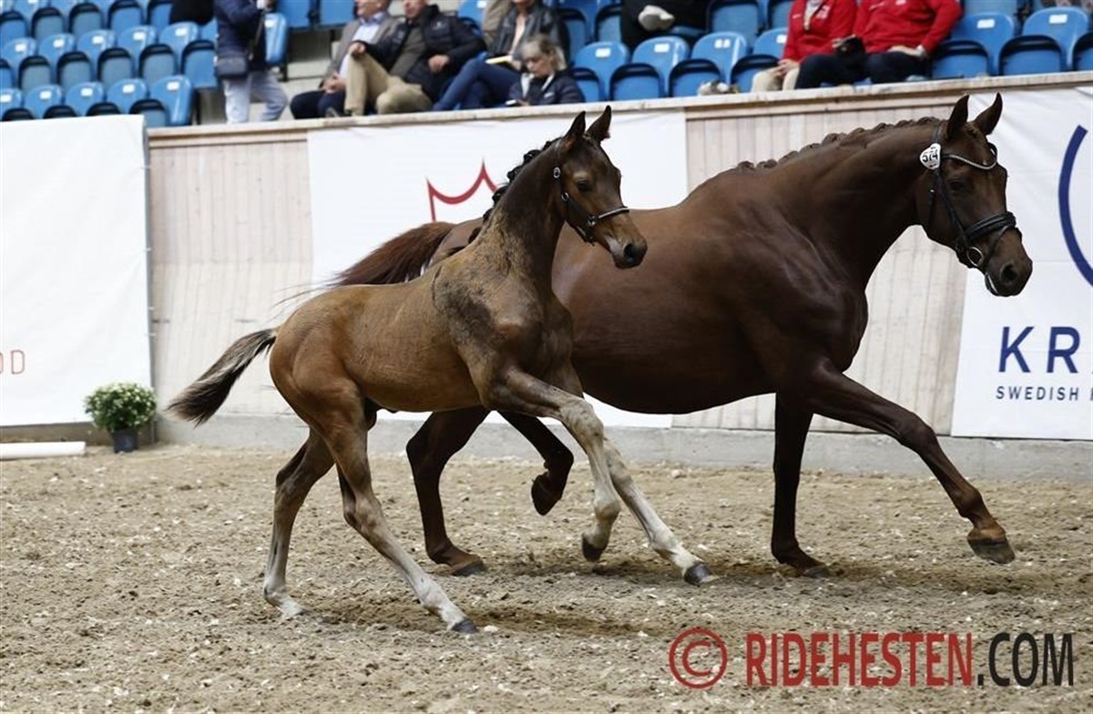 Det brune hingsteføl er fjerde generation på Stutteri Tophøj ved Anette Nilausen og Niels-Jørgen Johansen, og det er efter sølvmedaljehoppen Feline e. Floriscount/ Solos Landtinus.