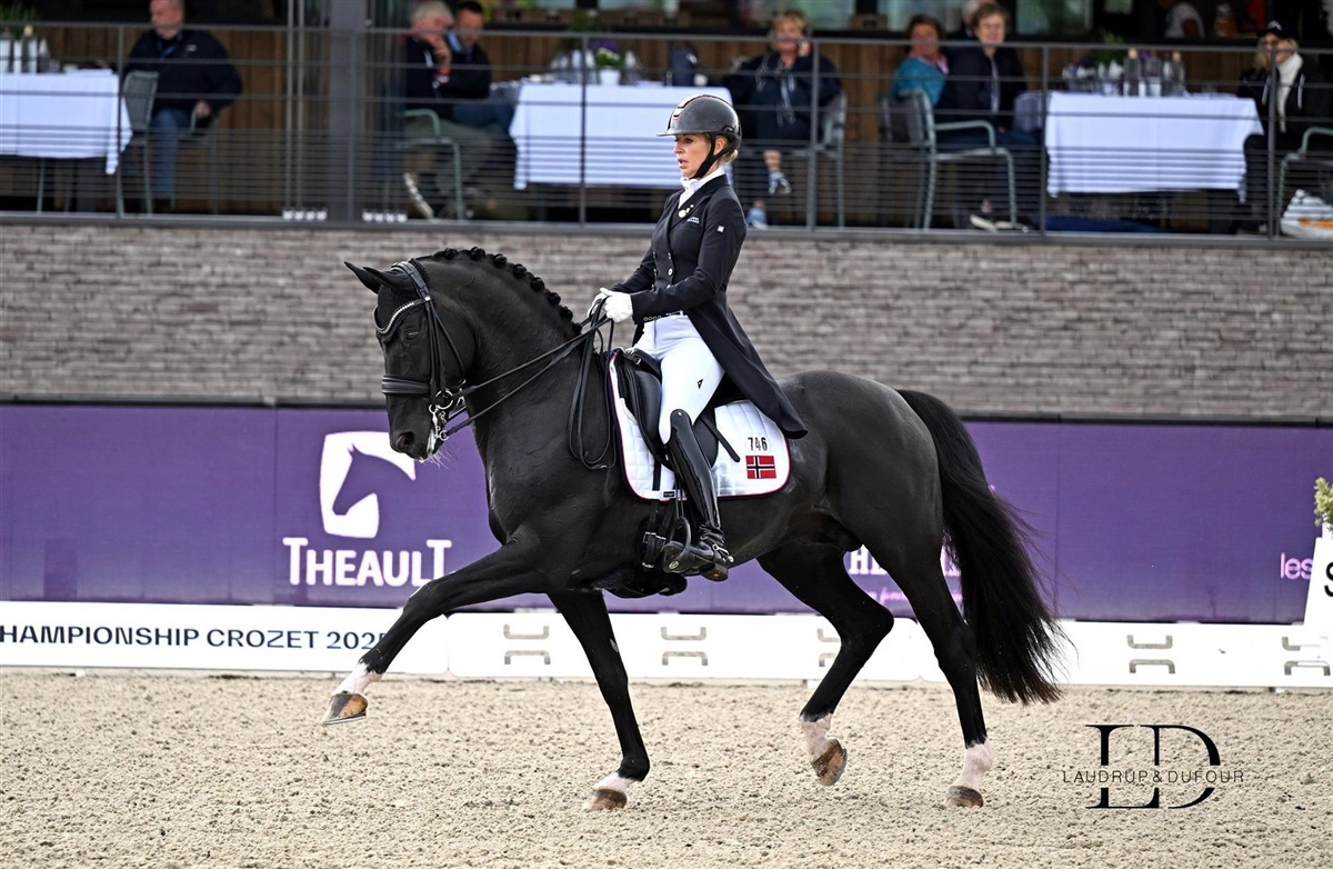 Norske Isabel Freese har netop været på banen med den danskejede Total Hope OLD e. Totilas/ Blue Hors Don Schufro, som ejes af danske Lone Boegh Henriksen fra HP Horses i samarbejde med Paul Schockemöhle. Parret red på banen som femte ekvipage i dag, og lagde virkelig flot fra start for Norge. Total Hope og Isabel Freese lagde rigtig flot fra start med gode piaff og passage-momenter. Desværre var den samlede skridt en lille smule anspændt, hvilket kostede lidt dyrt, men parret formåede at hive point hjem igen ved efterfølgende at lave virkelig flotte overgange skridt til passage, og det samme fra passage til piaff.