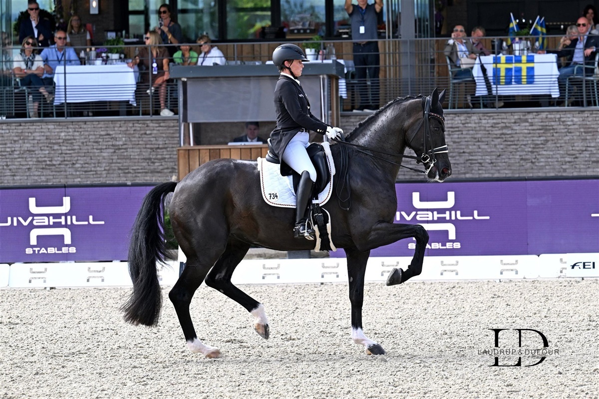 Det betyder også, at det danske hold lige nu er i front af holdkonkurrencen, men som bekendt mangler Tyskland og Storbritannien stadig deres bedste repræsentanter, henholdsvis Werth og Fry, men der er ingen tvivl om, at Laudrup-Dufour lige har redet både sig selv og Danmark ind i en fantastisk position. Det betyder også, at alle fire danske ekvipager er videre til morgendagens Grand Prix Special, da de alle er i top-30.
