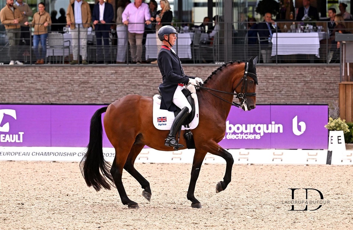 Foruden Tyskland er Storbritannien også en af Danmarks største konkurrenter. I går lagde de ligeledes rigtig godt fra start, hvor Becky Moody lige nu har lagt sig på en foreløbig andenplads med 74,829%. Netop nu har deres tredje ekvipage været på banen, Carl Hester med den 15-årige hingst Fame e. Bordeaux 28/ Rhodium - en ekvipage, der var med til at vinde EM-guld i Riesenbeck i 2023.