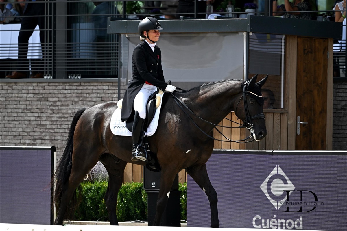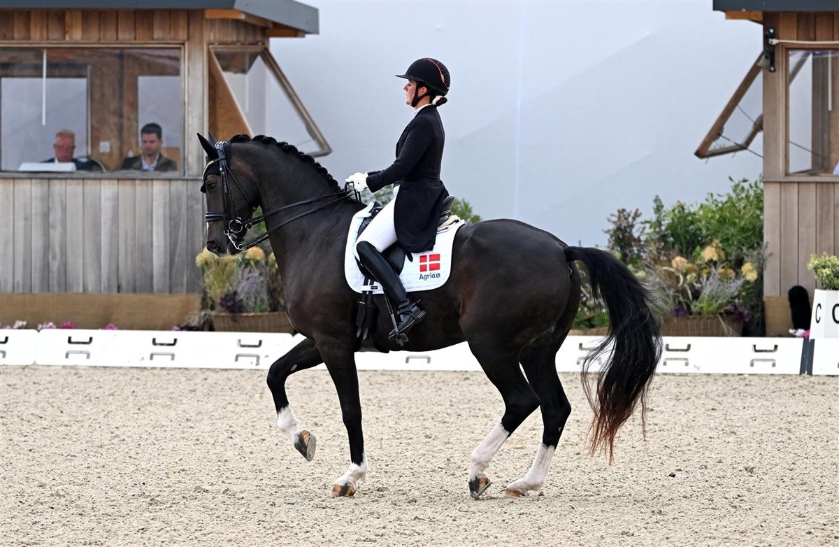 Anden danske ekvipage på banen i dag var 54-årige Rikke Dupont og Grand Galiano e. Grand Galaxy Win/ Blue Hors Don Schufro (opdr. Lotte og Gert Buchhave). Rikke og den 10-årige DV-vallak indfriede ved sommerens CHIO i Aachen for alvor deres potentiale, som er i tråd med den udvikling, der har været, siden de i 2022 blev en del af DRF’s perspektivgruppe. På baggrund af Aachen-resultaterne blev Rikke en del af A-gruppen og for første gang udtaget til at repræsentere Danmark ved et stort, internationalt mesterskabsstævne.