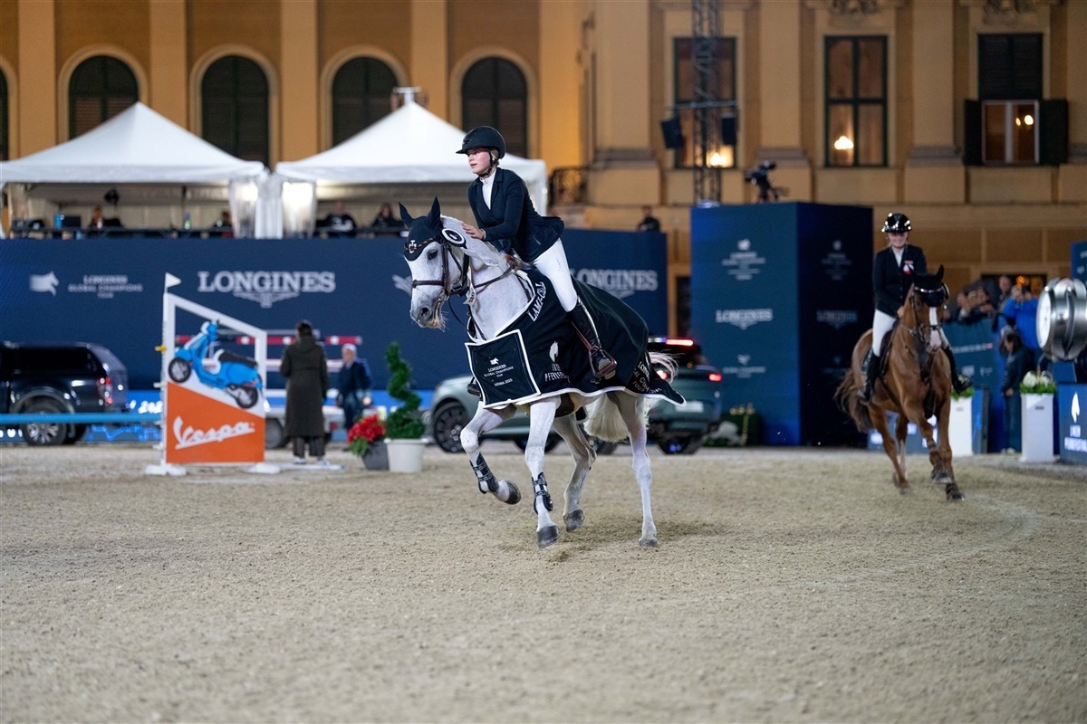 Den danskavlede sølvmedaljehoppe Quintessa Lox e. Quinton/ Casir Ask (opdr. Stutteri Lox v/ Joan Arler og Peter Børsen) satte i går et flot punktum ved det 5-stjernede Longines Global Champions Tour-stævnet i Wien, hvor hun sammen med sin tyske rytter Ava Ferch sikrede sig sejren i den 145 cm høje U25 Grand Prix.