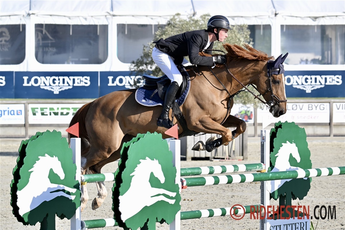 Bedste dansker blev Theodor Linde i sadlen på den 9-årige hoppe Talinka de Quelennec Z e. Taalex/ Diamant de Semilly, der red en fejlfri og hurtig omspringning i tiden 41,69 sekunder. Det var dog ikke helt nok til at følge med irske Alexander Butler, der tog sig af førstepladsen, og med en hurtig franskmand og en hurtig hjemmebanerytter, endte det med en flot fjerdeplads til Theodor Linde.