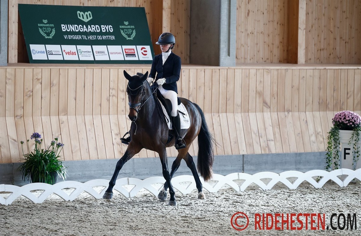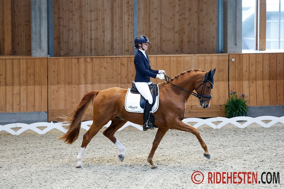 To heste fra samme opdrætter besatte de næste to pladser. Andenpladsen gik til norske Caroline Hansen fra Wind Equestrian med Lumiere Unik e. Franklin/ Blue Hors Don Romantic (opdr. Stutteri Unik v/ Morten Skov), der er ejet af opdrætteren. Ekvipagen opnåede 83,429 med 85 i galop som højeste score.