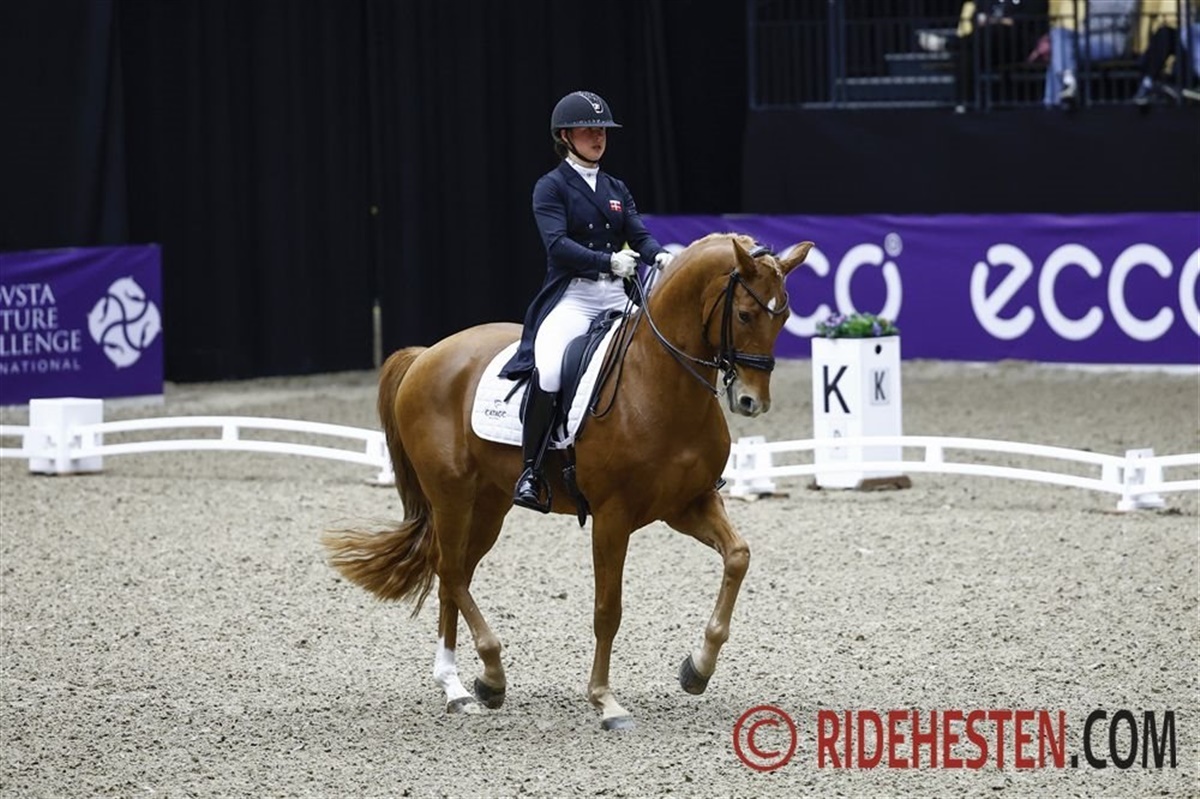 På fjerdepladsen blev det svenske Cecilie Bergåkra, der nu har base i Danmark, hvor hun arbejder hos NorCordia i Randbøl. I sidste weekend vandt hun DRF's championatsfinale for 5-års dressurheste på Stutteri Ask/Blue Hors, og denne weekend er hun til start ved World Cup-stævnet, hvor hun med My Friend e. Friendship/ Troll i dag red sig til 68,077%.