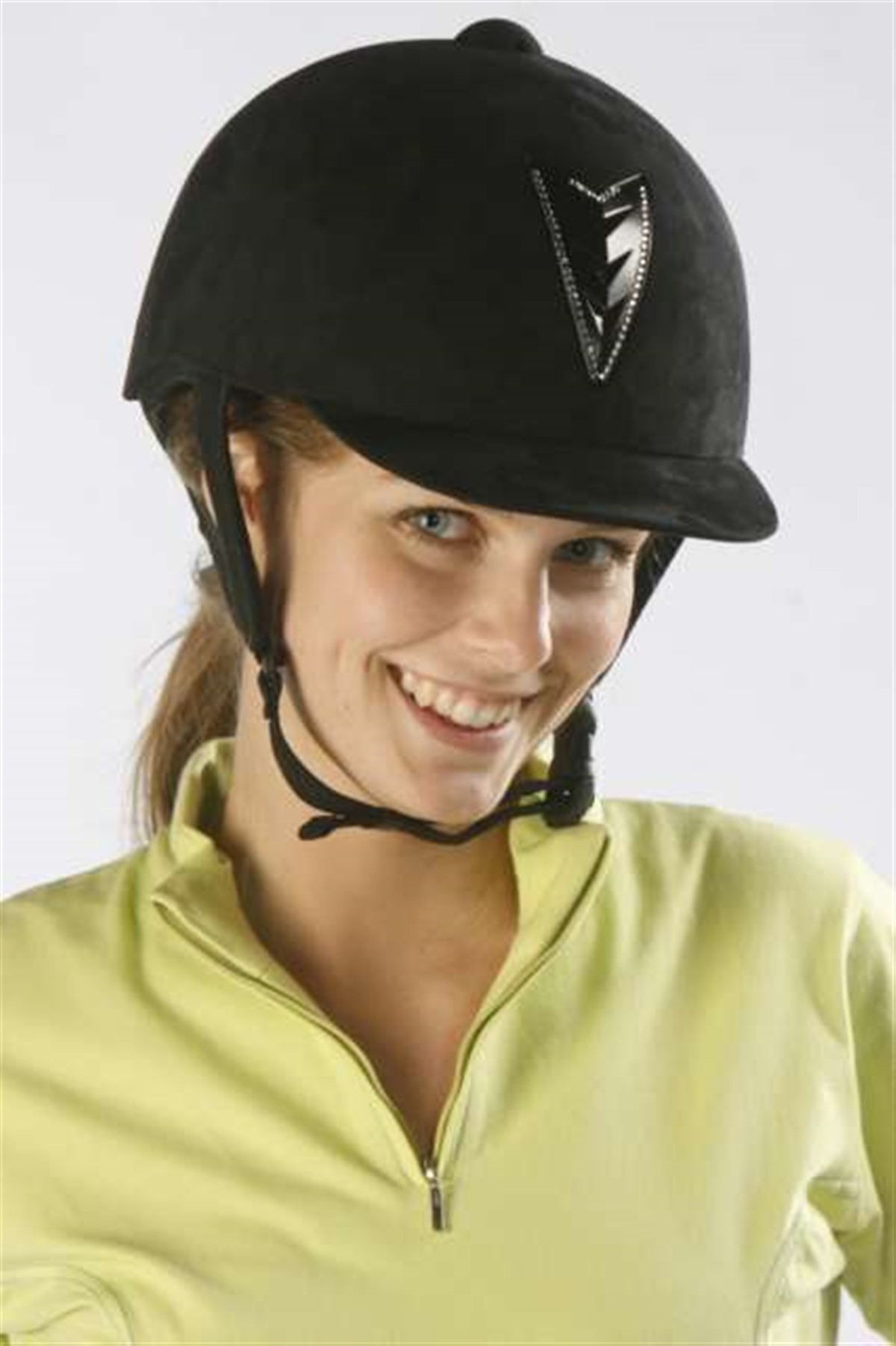 Det funkler i stener og diamanter både på sprang og dressurbanen, og det ser riktig lekkert ut. Det gir imidlertid ingen ekstra poeng, har det danske dressurutvalget slått fast. I denne trenden som i alle andre trender gjelder det ikke å overdrive, stenene skal være diskret plasseret, så de kun gir en liten piff til kontrasten av den mørke farven i hjelmen og stenene skal ikke dominere. Ridehjelmene skal fremdeles være godkjente i henhold til reglementet. So girls, less is more gjelder her også