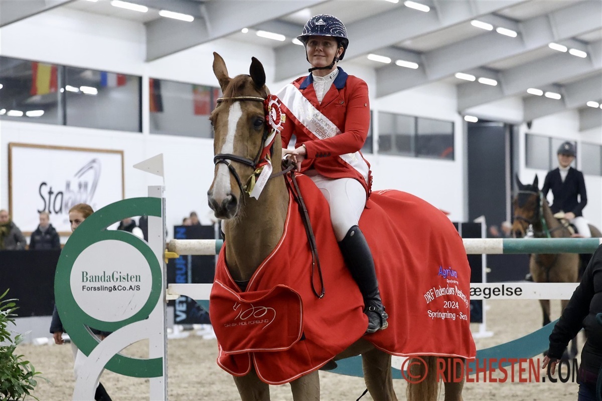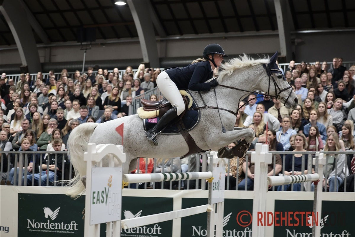 I MA2** 140 cm-klassen blev rytterne ved med at erobre førerpositionen. Hver gang en ny rytter kom på banen, red de sig i spidsen. Der var dog ingen, der kunne nå Rikke Haastrup Kristensen og Balouca Z e. Baloubet du Rouet/ Parco, som tog sejren med næsten et sekund til andenpladsen. Rikke og Balouca er særdeles erfarne i mesterskabssammenhæng - de er nemlig regerende indendørs danmarksmestre. I morgen skal de ride første afdeling af seniorernes mesterskab - mon de kan forsvare titlen?