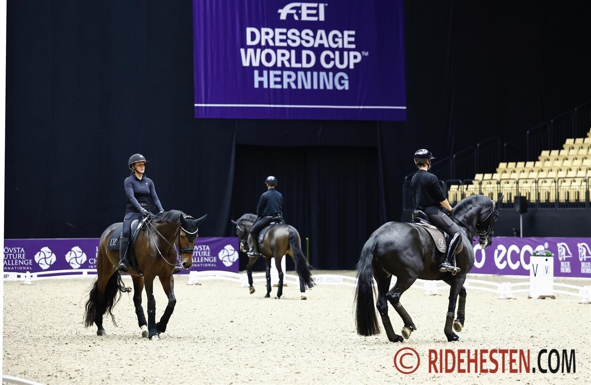 I denne uge bliver FEI Dressage World Cup for den vesteuropæiske liga for alvor skudt i gang, når MCH Messecenter Herning igen åbner dørene til et brag af et stævne. De seneste to dage har der været afholdt konkurrencer i springning i både Pavo Hal M og Jyske Bank Boxen, men her til eftermiddag blev springbanen byttet ud med det hvide dressurhegn, da World Cup-ekvipagerne fik mulighed for at ride en tur på banen.