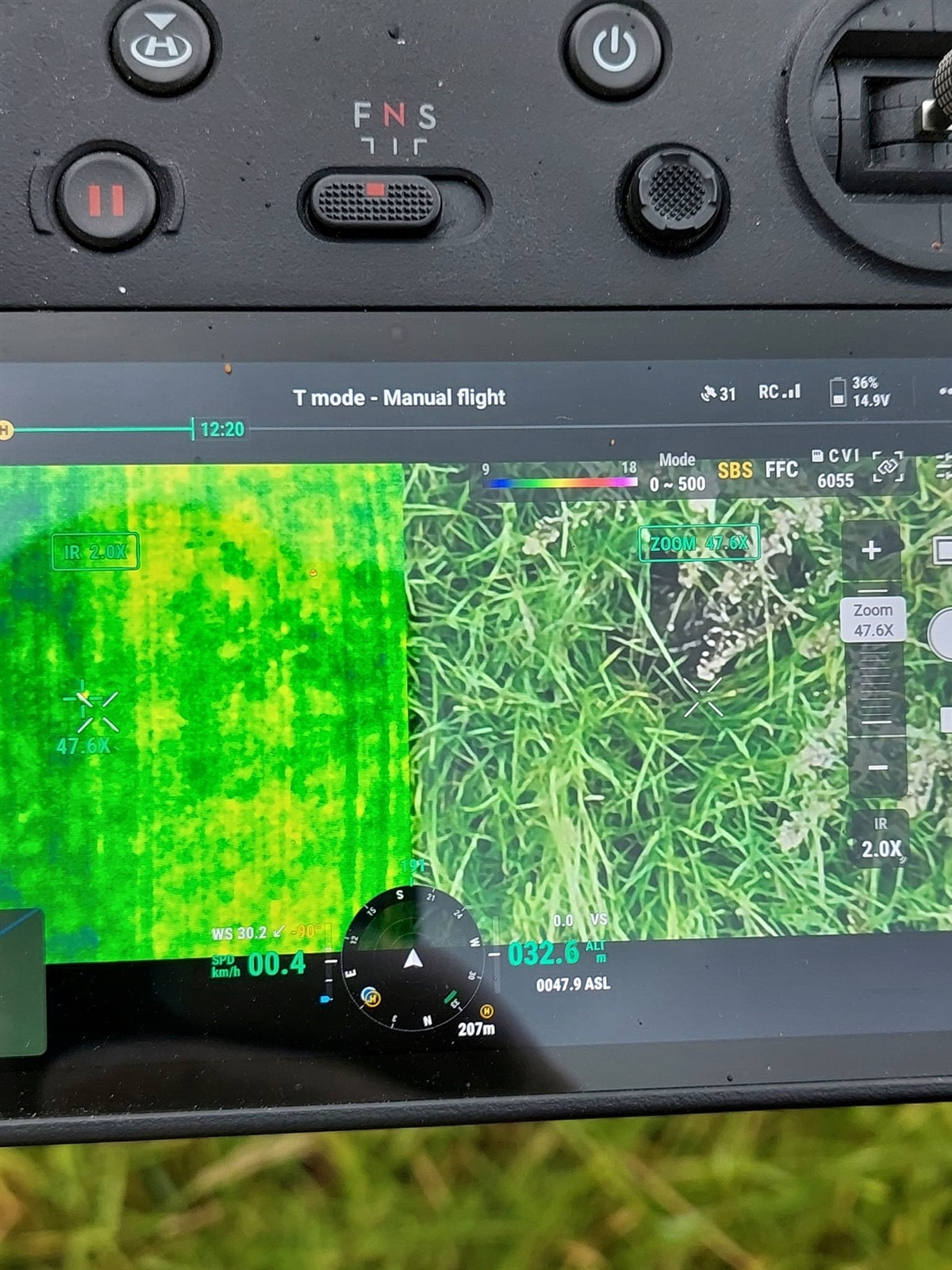 Ole Rasmussen som er indehaver af virksomheden har forskellige ydelser indenfor jagt- og naturpleje, men en af dem er, at han med en termisk drone kan flyve over markerne og spotte, når rålam eller andre dyr ligger i græsset. På den måde har man inden slåning mulighed for at fjerne dyrene, så de ikke bliver slået ihjel i processen.