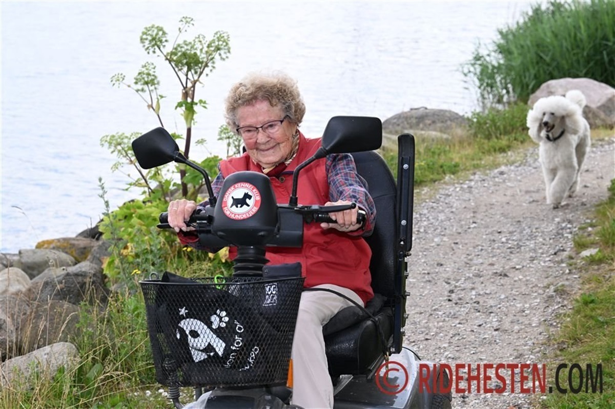 Hun stoppede dog med selv at køre bil sidste år, men det betød ikke, at hun skulle snydes for sit daglige besøg på Jørgens seneste påfund Rold Gl. Kro – en hundekro – hver eneste aften. Jørgen eller Louise har hentet Enid, så hun hver aften har kunnet spise på kroen og nyde social adspredelse og hygge. Her kom hun også for at træne sin nye puddel Allie på stedets agilitybane.