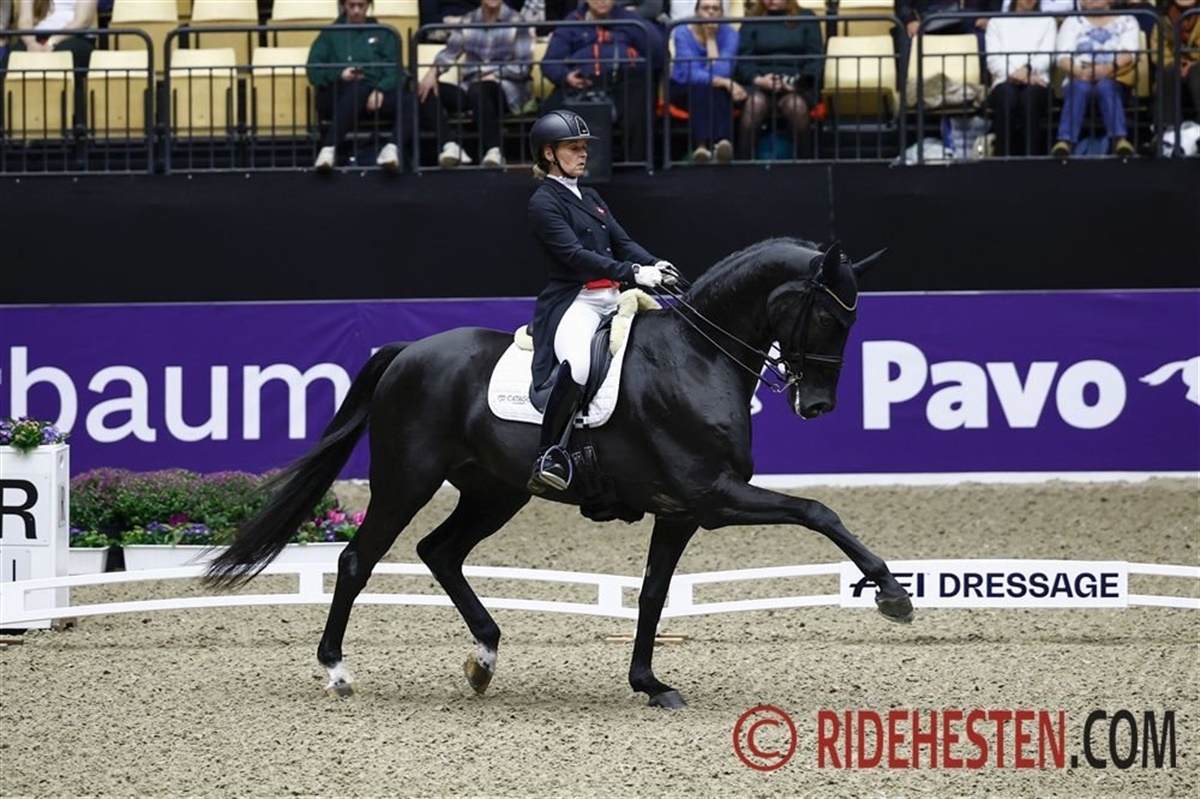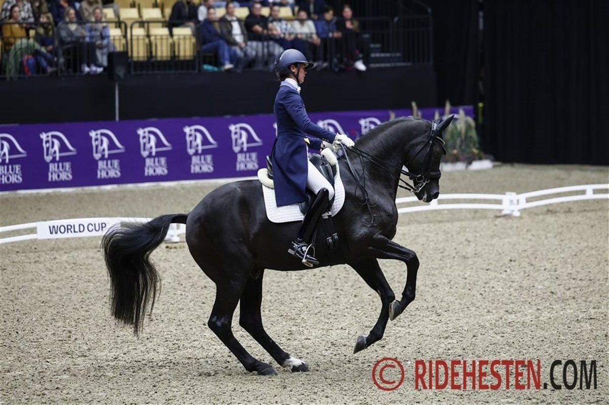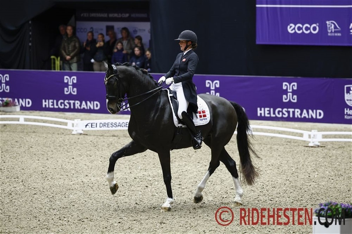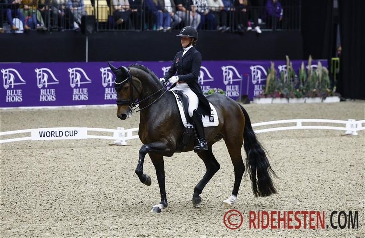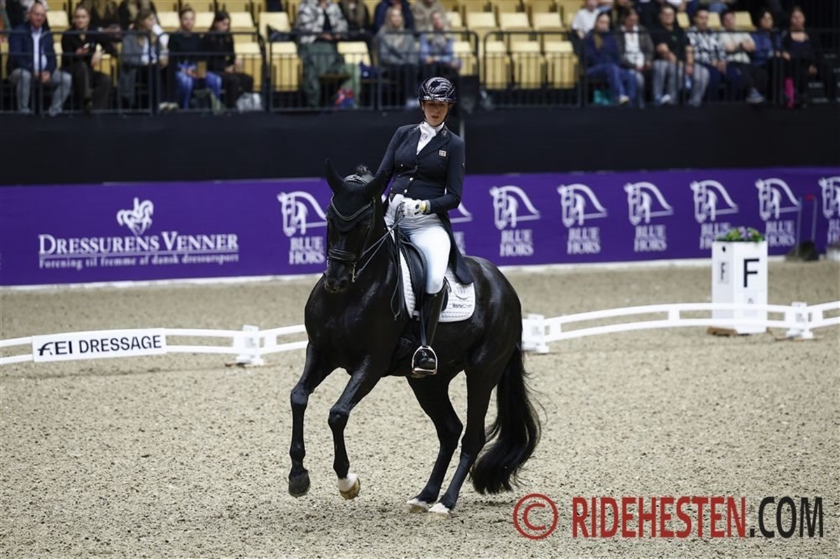 Rikke Dupont og Grand Galiano e. Grand Galaxy Win/ Blue Hors Don Schufro (opdr. Lotte og Gert Buchhave) havde deres World Cup-debut i dag og blev nr. 9 med 71,108%, men parret er ikke uvante i Boxen. De vandt nemlig Dansk Varmblods Unghestechampionat i dressur, da vallakken var fem år, og det er jo dejligt at se sådan en hest gå hele vejen til topsporten, hvor han allerede i en alder af ti år gør det så godt.