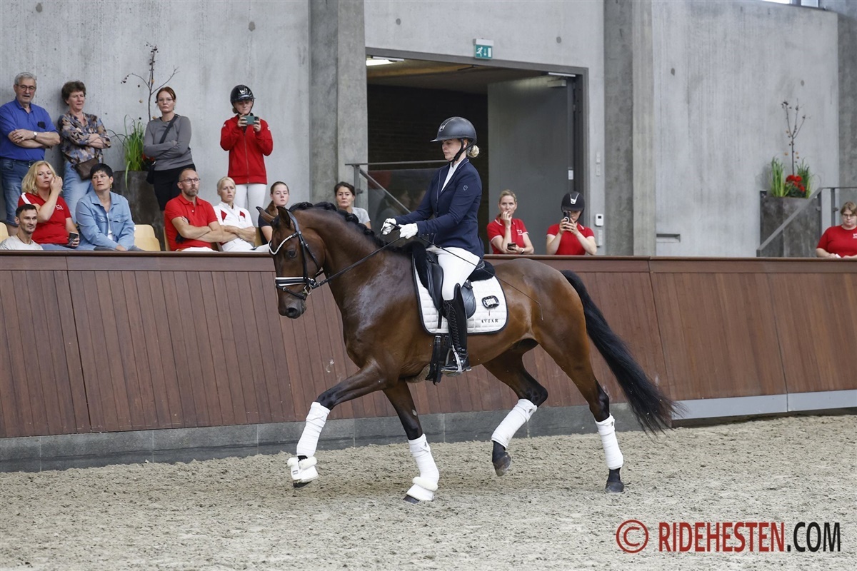 – En meget sympatisk og vellinjeret hoppe, hvor vi måske nok kunne have ønsket lidt større partier. En hoppe som har kønspræg og et godt udtryk. Hun har en lang velformet hals. Vi blev betaget af hende under rytter, hvor hun går i flot balance. Hun har tre funktionelle, smidige og regulerbare gangarter. Den bedste gangarter i dag er skridten, hvor hun holder takten, arbejder gennem hele kroppen, og går med stor rummelighed 8,5. God rummelighed, bæring og balance i galop og trav. Hoppen har vist sig særdeles ridelig og samarbejdsvillig 9,0, hvilket udløste en billet til Dansk Varmblods Krafft Eliteskue, der afholdes om små 14 dage.