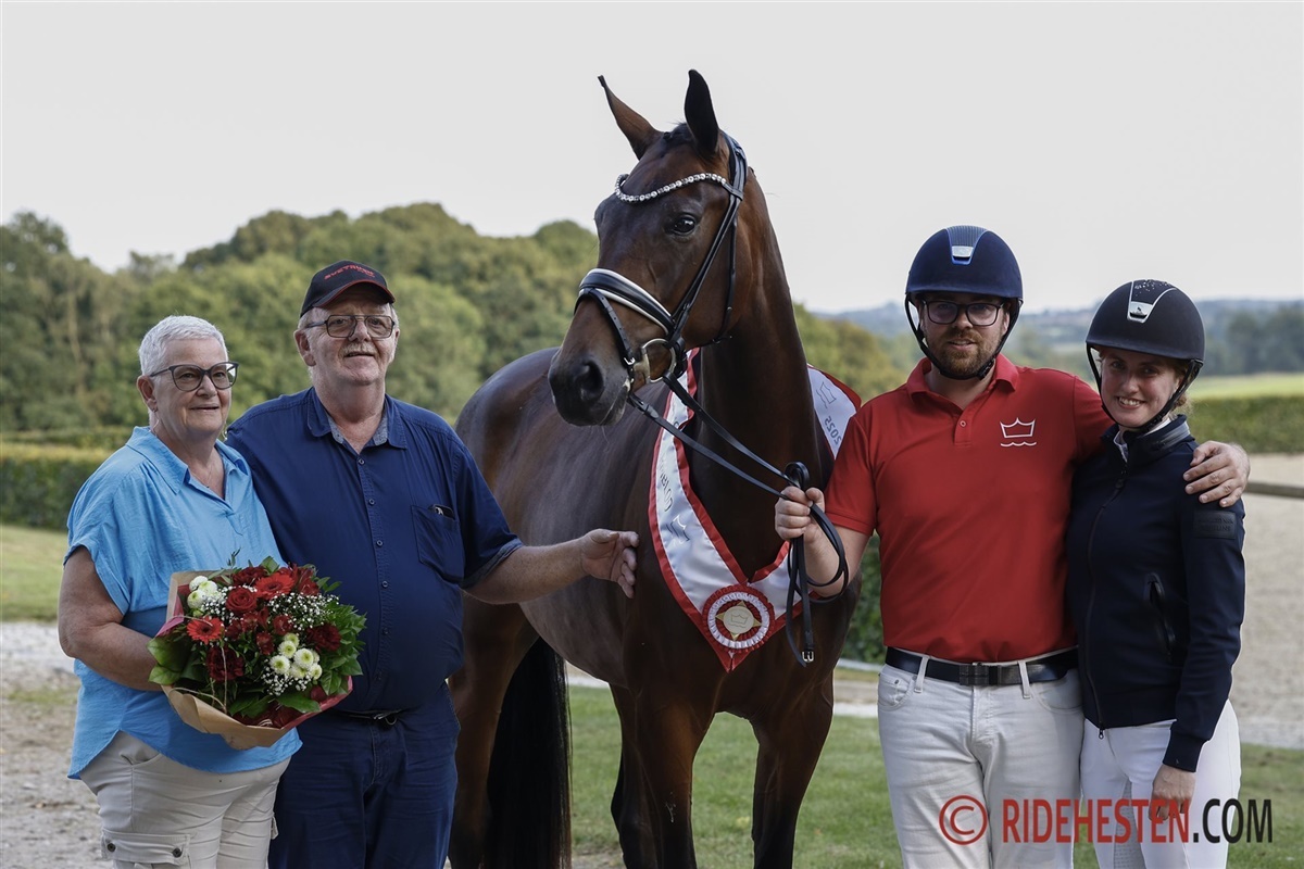 – En storrammet, højtstillet vallak, med et dejligt udtryk, og han har virkelig overbevist os i rideprøven. Han fik 7,5 for sin taktfaste skridt, og 8,5 for sin dejlig rummelige og smidige trav, og han shiner helt i galop, hvor han arbejder rummeligt med stor bæring 9,0. Han har vist sig meget ridelig og fået 8,5 samt 8,5 i kapacitet.