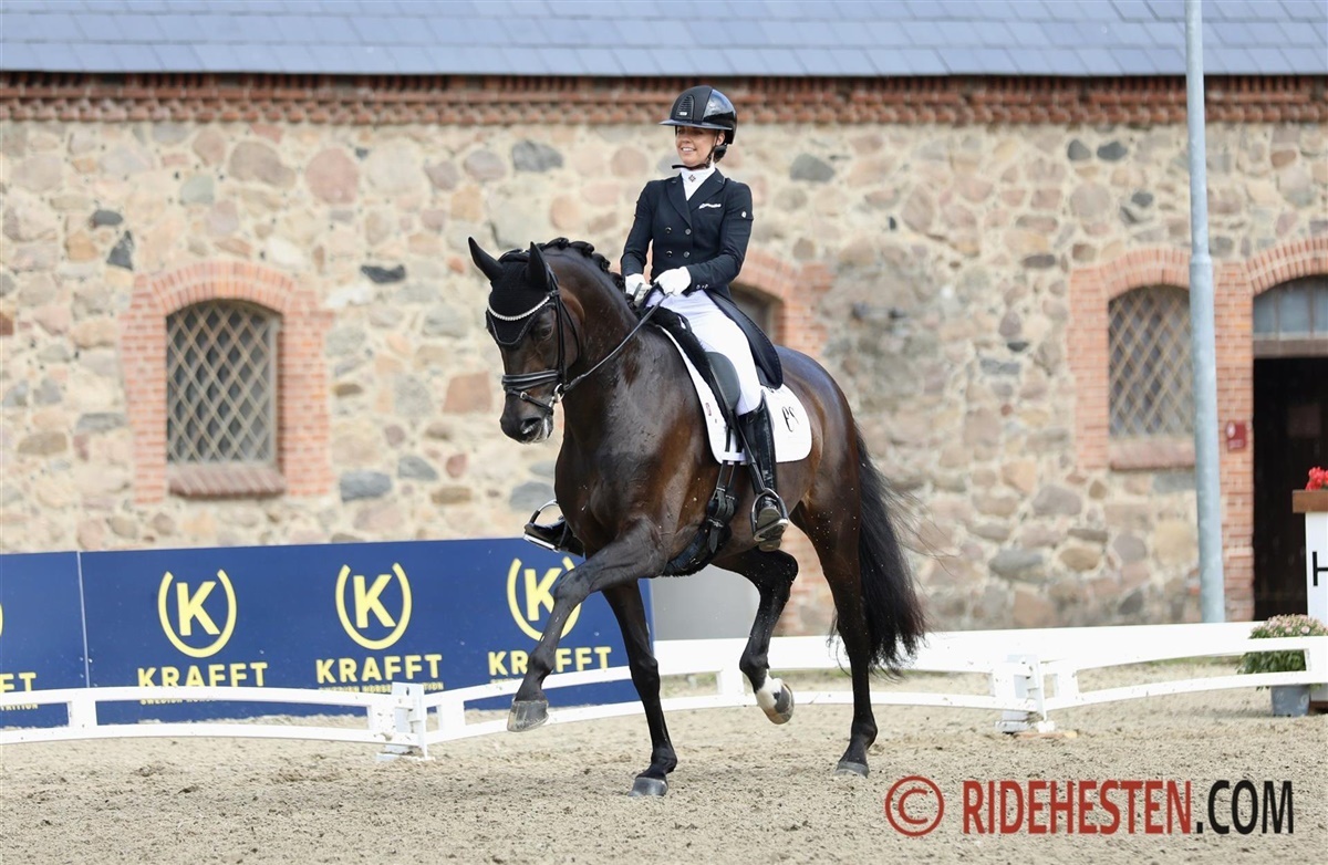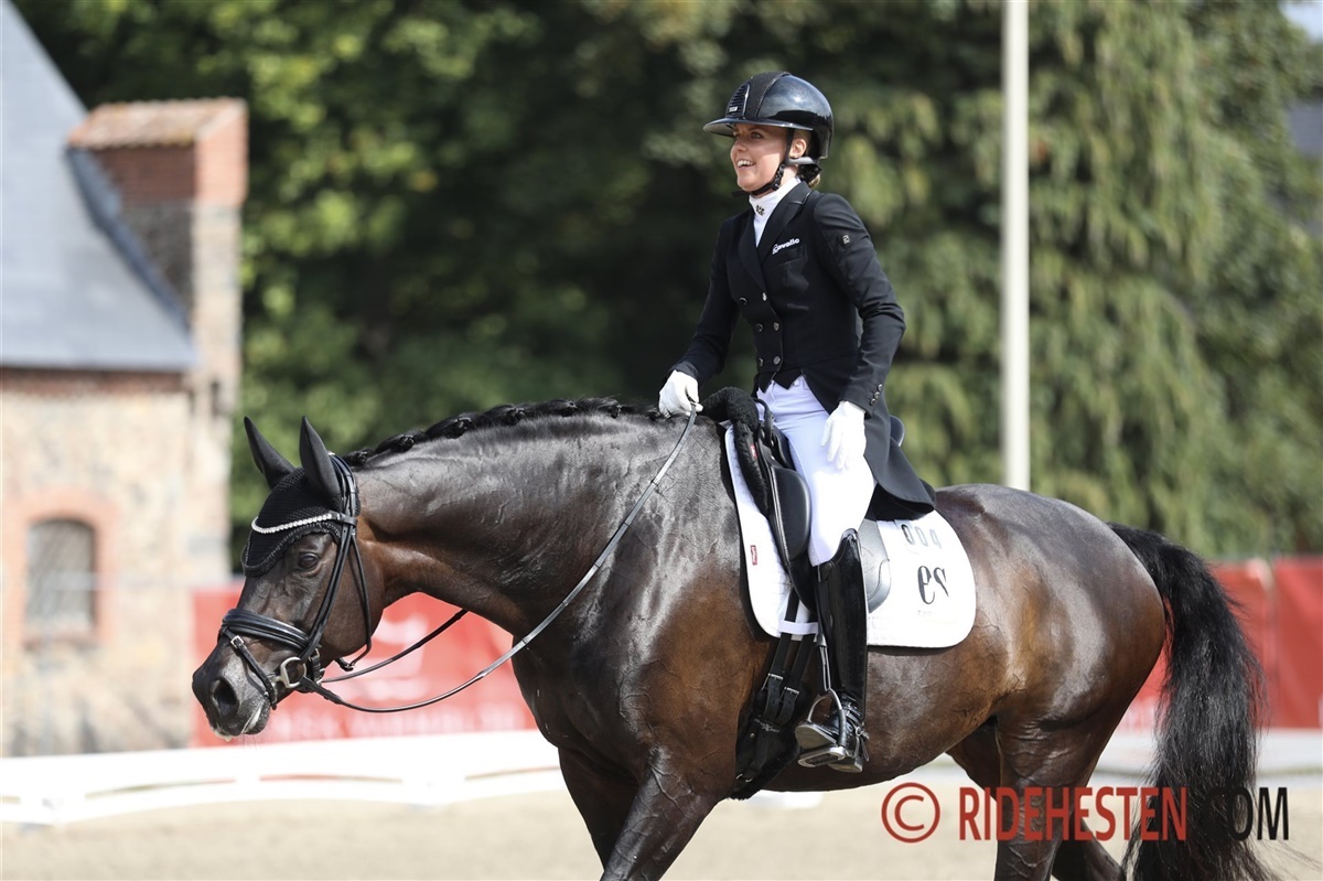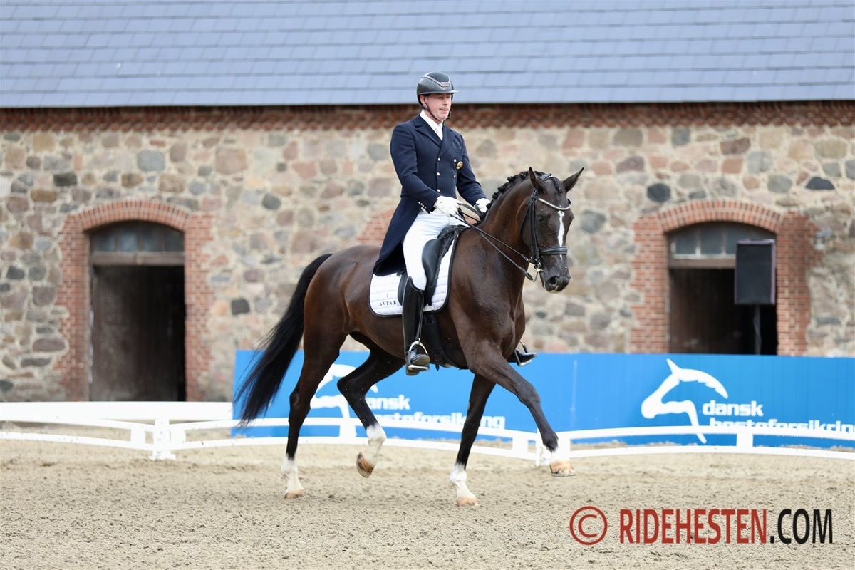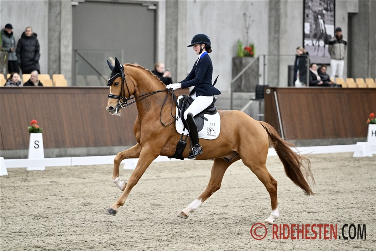 Andenpladsen gik til Blue Hors-rytter Sophia Ludvigsen, der er tilbage på stævnepladserne efter Blue Hors' stævnepause. I sadlen på den 8-årige DV-vallak Højgaardens Zacksmir e. Blue Hors Zack/ Sir Donnerhall I (opdr. Stutteri Højgaardens Heste) red hun sig til en andenplads med 71,914%.