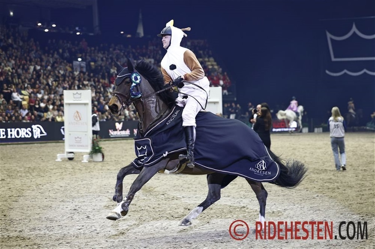 Efter en pause var det tid til gallaspringene, hvor ryttere og heste selvfølgelig også var klædt ud i tråd med showets tema. Claus Hundebøl, der var klædt ud som snemanden Olaf fra Disney-filmen Frost, løb med sejren efter en lynhurtig runde på Cashmere Lady e. Contendro I/ Stakkato.