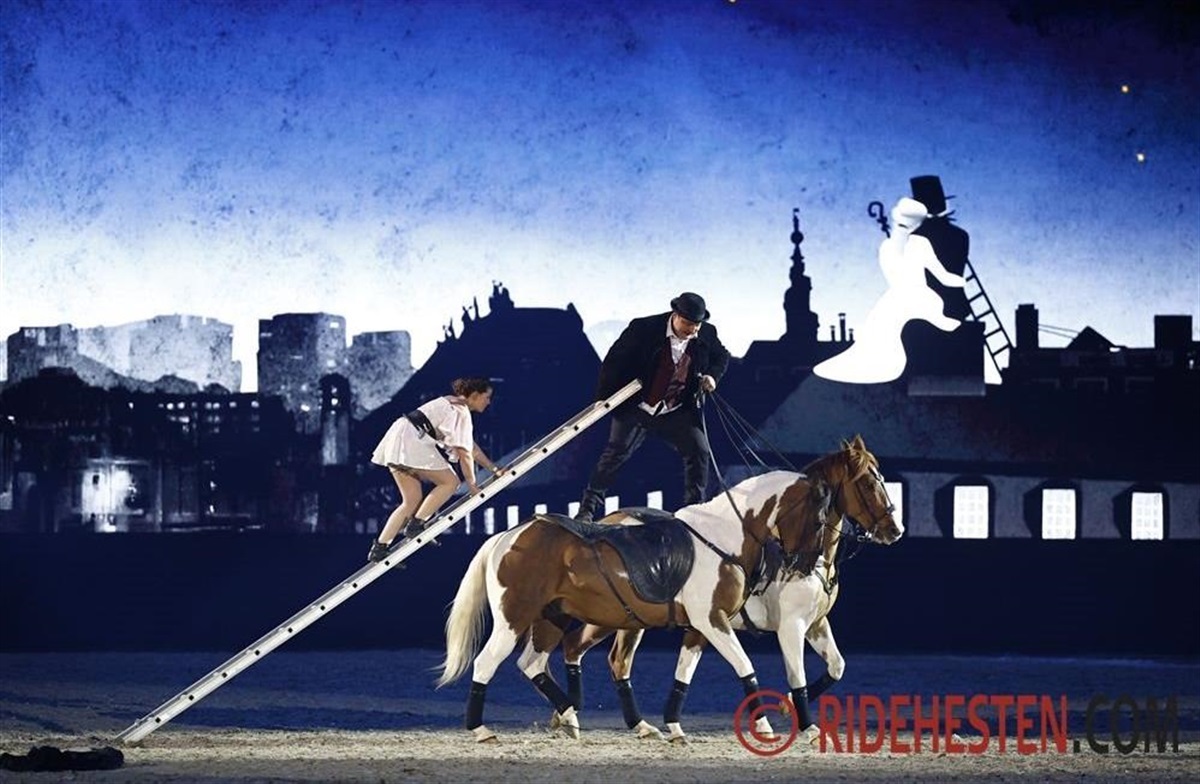 Den romantiske fortælling om hyrdinden og skorstensfejeren blev indledt af to dansere, og derefter optrådte Caval Show med Benoit Soumille og hans kvindelige hjælper på ryggen af to heste.