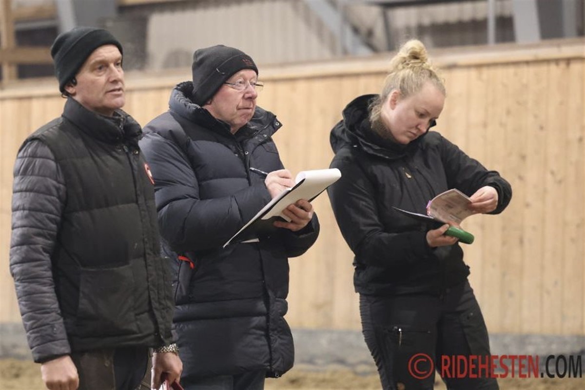 Det var også rart for både hingste og deltagere, at komme væk fra vinden og ind i ridehallen, hvor indsyningen blev foretaget med støtte fra dyrlæge Nicoline Hedegaard Nielsen, Dyrlægerne Nørhald.