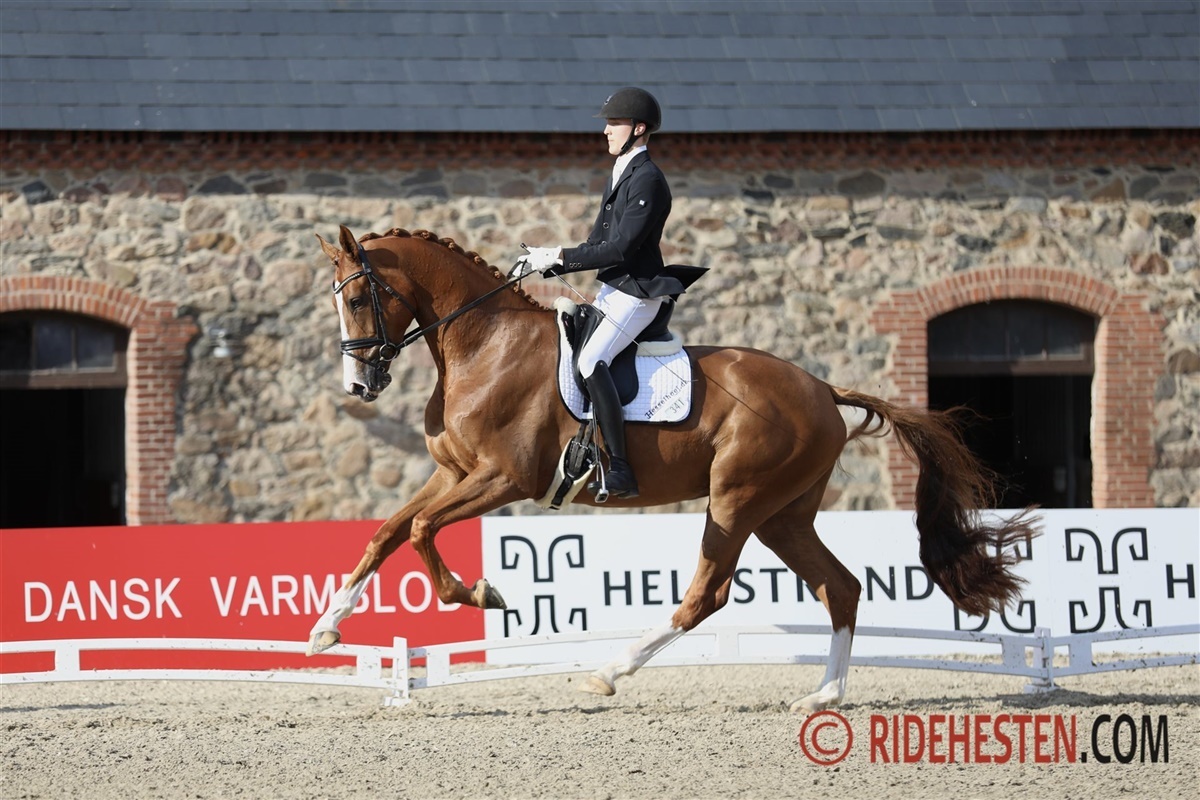 Det var nemlig den røde DV-hoppe Stenkærgårds Plasini e. Janeiro Platinum/ Uphill (opdr. Helle Skelde), der løb med en suveræn sejr. Med hele 93,286% og blandt andet 9,5 for skridt, kapacitet og harmoni, 9,3 for galop og 9,0 for trav og ridelighed, blev det til en overbevisende sejr for hoppen, der i dag blev flot fremvist af Anders Uve Sjøbeck Hoeck.