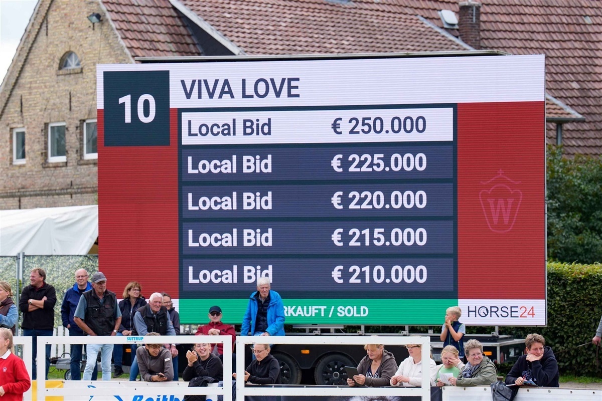 I den forgangne weekend fik publikum for alvor underholdning for alle pengene, da følauktionen udspillede sig under den traditionsrige "Westfalen-Woche" som bød på hele 110 dressurbetonede føl. Hingsteføllet Viva Love e. Viva Gold/ Fürstenball, der er opdrættet og fremstillet af Frank Dahlhoff fra Lippetal, vakte allerede stor begejstring hos de købeglade publikummer under præsentationen forud for auktionen - og i ringen var interessen bestemt ikke mindre.