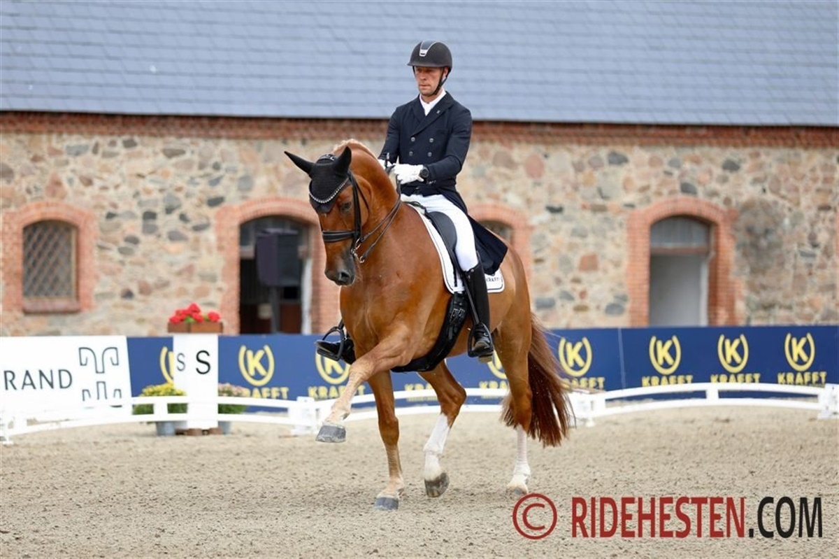 Det ustadige sommervejr viste sig fra sin bedste side i eftermiddagens Grand Prix-klasse, sponsoreret af ECCO, til landsstævnet i dressur på Vilhelmsborg, hvor solens stråler skinnede på de mange tilskuere på gårdspladsen. Første og sidste rytter i klassen var Daniel Bachmann Andersen, der allerede havde to sejre med i bagagen fra fredagens Intermediare II. Den danske dressurrytter lagde ud med den 11-årige oldenburgervallak Flash Gordon e. Fiderbach/ Blue Hors Don Romantic, som han har redet siden januar i år.