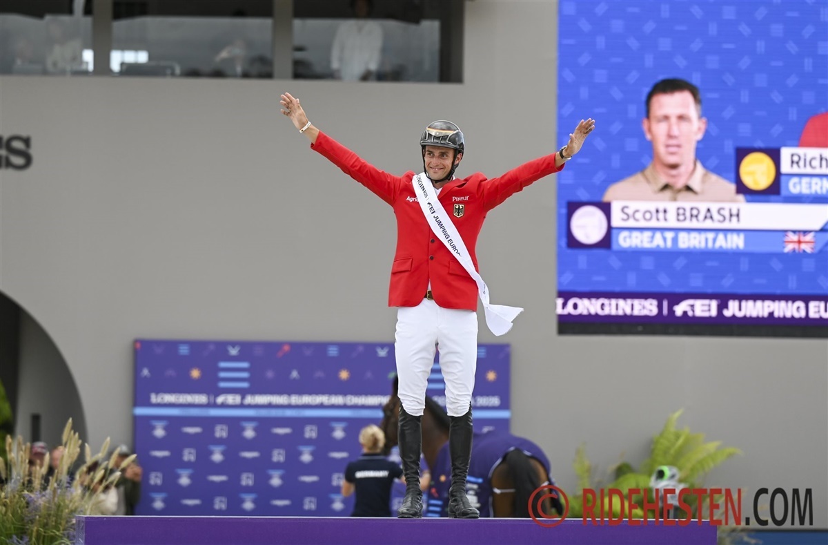 Gennem alle fem runder ved årets EM, har tyske Richard Vogel og den velspringende hingst United Touch S e. Untouched/Lux Z leveret fantastisk ridning, og de har leveret ene fejlfrie runder. På førstedagen leverede de det næsthurtigste ridt, som betød, at de kun tog 0,01 fejl med derfra, og det er også det resultat ekvipagen slutter med. Dette resultat er historisk, da der eftersigende ikke er nogen, der har vundet med så få fejl før. Den nykårede europamester fortæller: