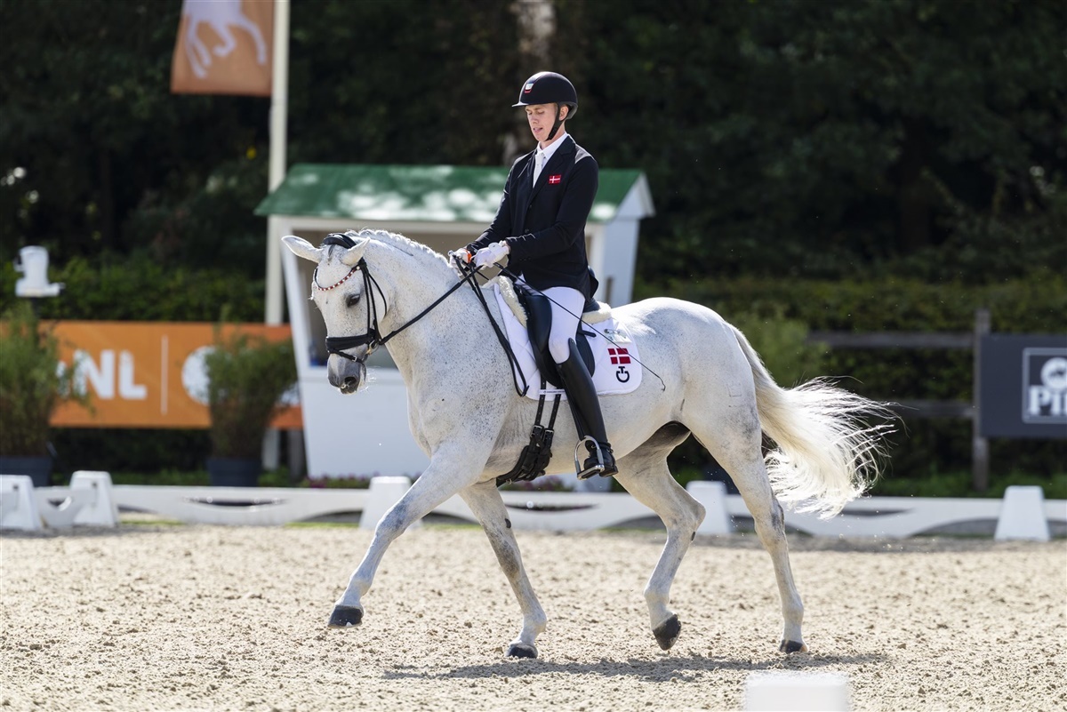 Pia Wulff Jelstrup med Zafia e. Blue Hors Zee Me Blue/ Caretino (opdr. Gitte Elkjaer Kjeldsen) red sig ligeledes til individuelt sølv i torsdags og gentog successen i grad IV i dag. Karla Dyhm-Junge og Miss Daisy e. De Noir/ Blue Hors Future Cup (opdr. Marianne Brinck Stengaard) er begge dage endt lige udenfor placeringsrækken på henholdsvis fjerde- og femtepladsen.