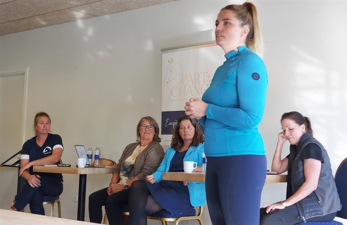 Sarah Gerding er arrangør bag Part of the Change- Welfare horsesports festival, som netop nu løber af stablen på det smukke ridecenter ved Midddelfart på Fyn. Hendes mål med festivalen er at udfordre og gøre hestemennesker nysgerrige på andre træningsmetoder, som ikke nødvendigvis er den klassiske måde at træne heste på.