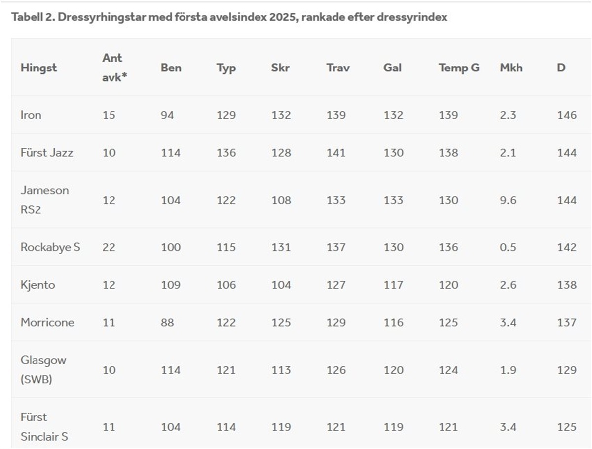Svensk Varmblod har udgivet nye indekstal, som man kan læse alt om her. Data fra årets svenske unghestebedømmelser samt konkurrenceresultater t.o.m. 15. oktober 2025 er sammenregnet med tidligere års bedømmelse og resultater og udgør til sammen de nye indekstal for avlshingste.