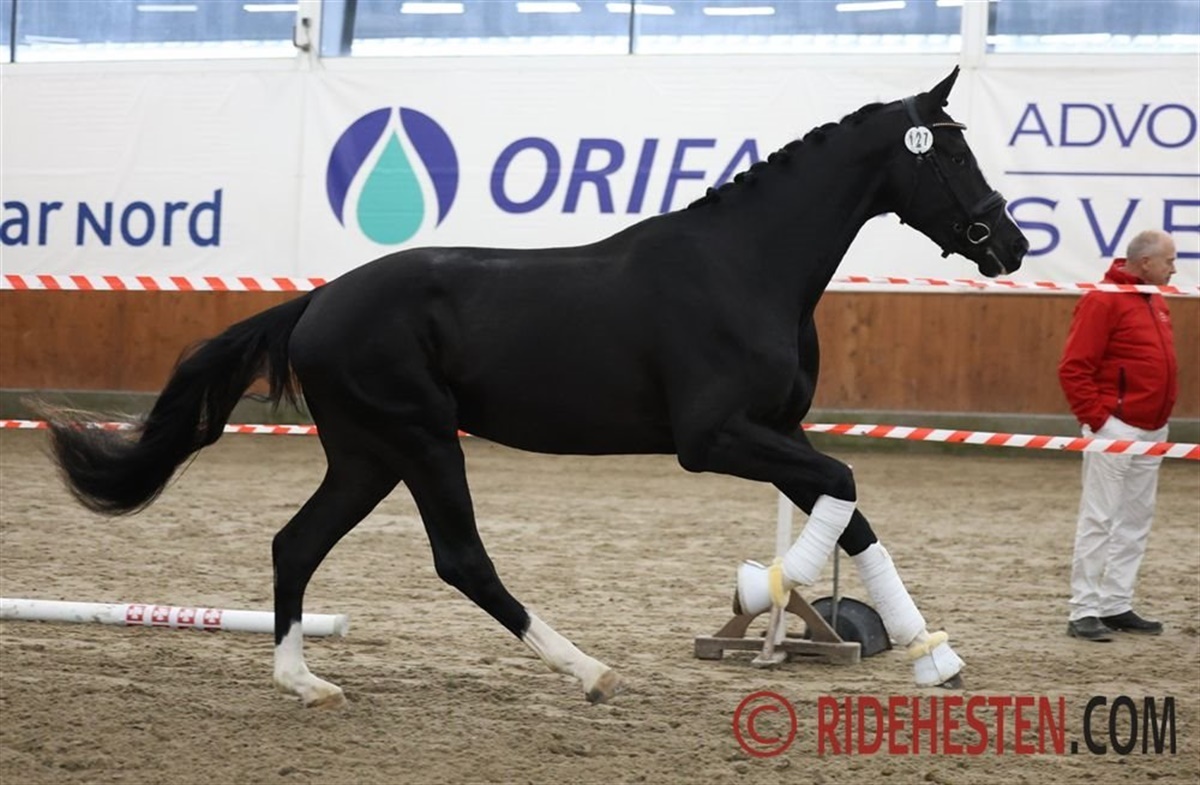 Nummer tre i klassen blev den tyskavlede RDH-hoppe Ravena Rose vom Leisch e. Raven/ Fürst Heinrich/ Warkant redet af Michala Damm-Frydenberg til 7,7 for trav, 8,2 for skridt og 8,3 for galop, ridelighed og kapacitet samt 8,5 for harmoni.