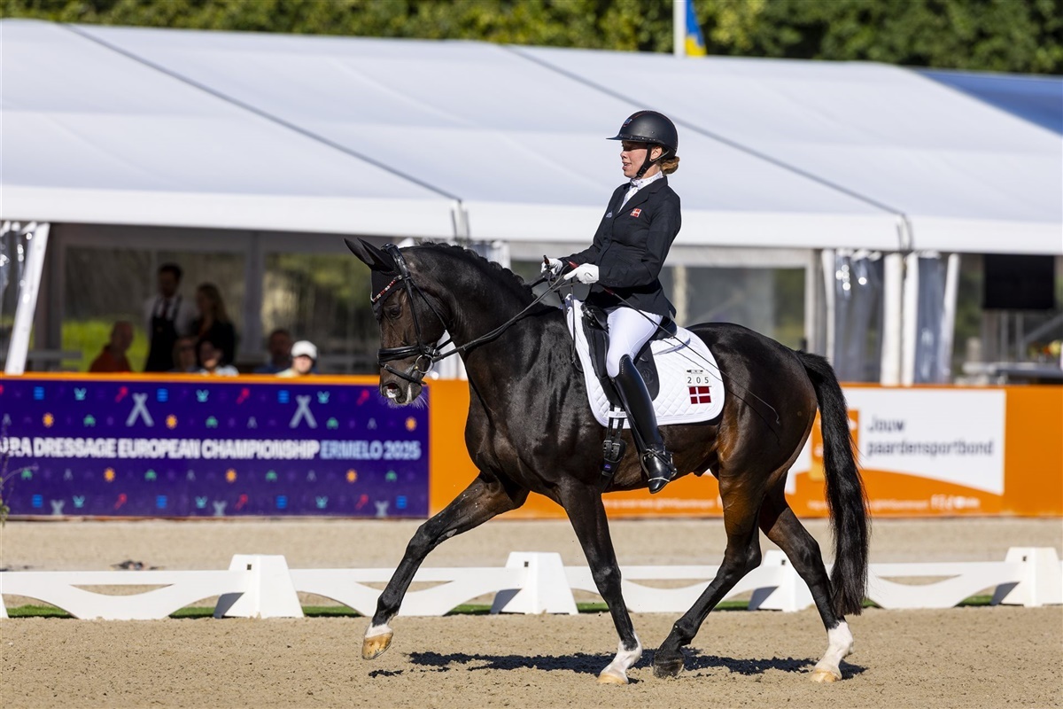 Katrine Bjelke Kristensen har ligeledes haft et rigtig flot EM indtil videre, og i dag fulgte hun altså trop. Efter grad III-rytterne havde været på banen, var det nemlig blevet tid til grad II-rytterne, der her talte én enkelt dansker, Katrine Bjelke Kristensen og Gørklintgårds Quater.