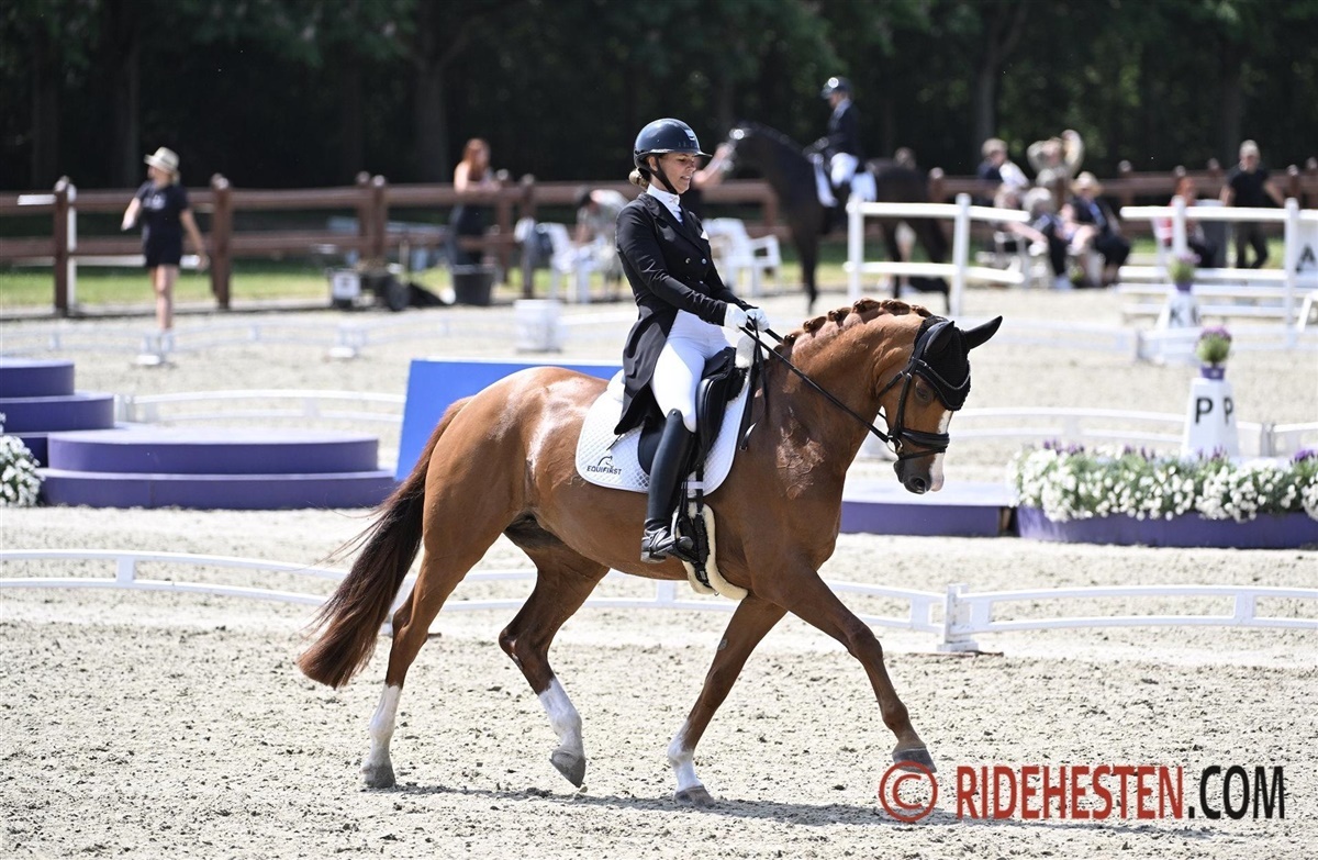 Zara Bruun Jensen rider i grad III og har i løbet af weekenden redet to femtepladser hjem. I sadlen på den 18-årige FS Dali e. Fs Don't Worry/ Fs Cocky Dondy red hun blandt andet fredagens Grand Prix A til 66,445% og søndagens Grand Prix B til 64,611%, der indtil videre har sikret hende to femtepladser.