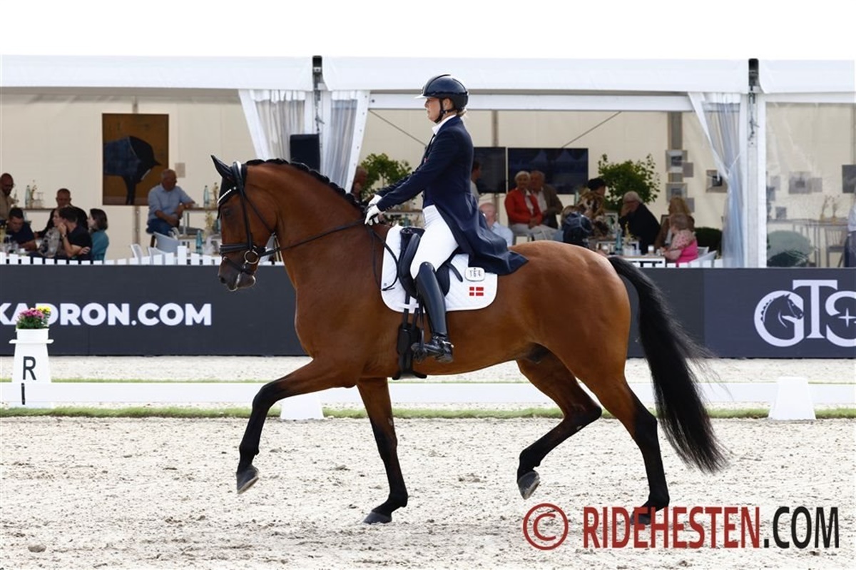 Astrid Gemal og Valegro Majlund e. Vitalis/ Zhivago (opdr. Majlund Stutteri ApS) har netop været på banen som den første danske ekvipage i dag. Astrid leverede et fejlfrit og sikkert ridt med den store brune vallak, som hun selv ejer sammen med Bang Dressage med ved Lone Bang Zindorff, som kommer til start med sin hest senere i klasse.