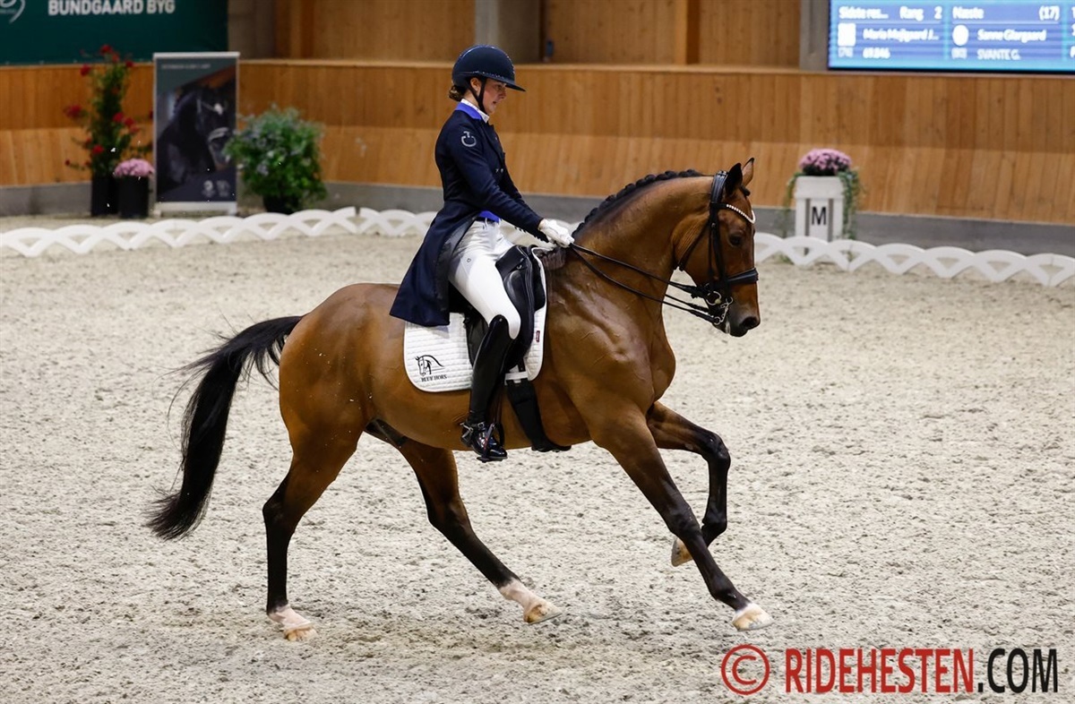 Nærmeste konkurrent for ekvipagen fra Vallø Rideklub blev Sophia Ludvigsen og den 8-årige KWPN-vallak og tidligere kårede Blue Hors Monte Carlo TC e. Dream Boy/ United fra Fyens Rideklub, der i dag opnåede 72,252%. De blev efterfulgt af Maria Mejlgaard Jensen ligeledes fra Vallø Rideklub på den 10-årige hannoveranerhoppe Sushi e. San Amour I/ Fürst Heinrich 69,846%. De 16 ekvipager, der i dag opnåede minimum 60% er klar til anden afdeling i morgen.