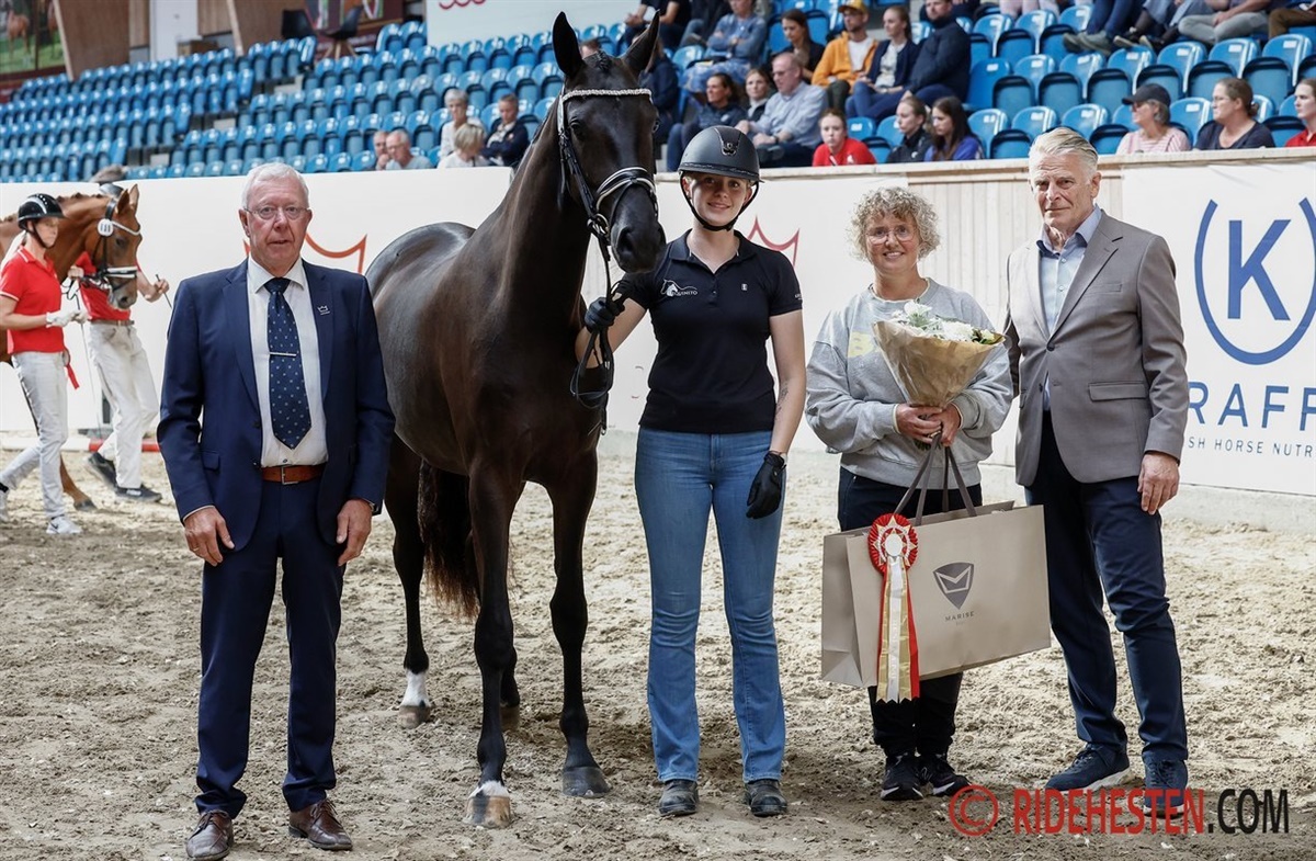 Vinder af titlen Årets dressurbetonede 2-års hoppe blev Darbie Højmark DWB e. Danciero/ Franklin, der er opdrættet af Inger Wejlstrup og ejet af LL Horses v/ Lennart Lindberg, som selv fremviste hoppen.