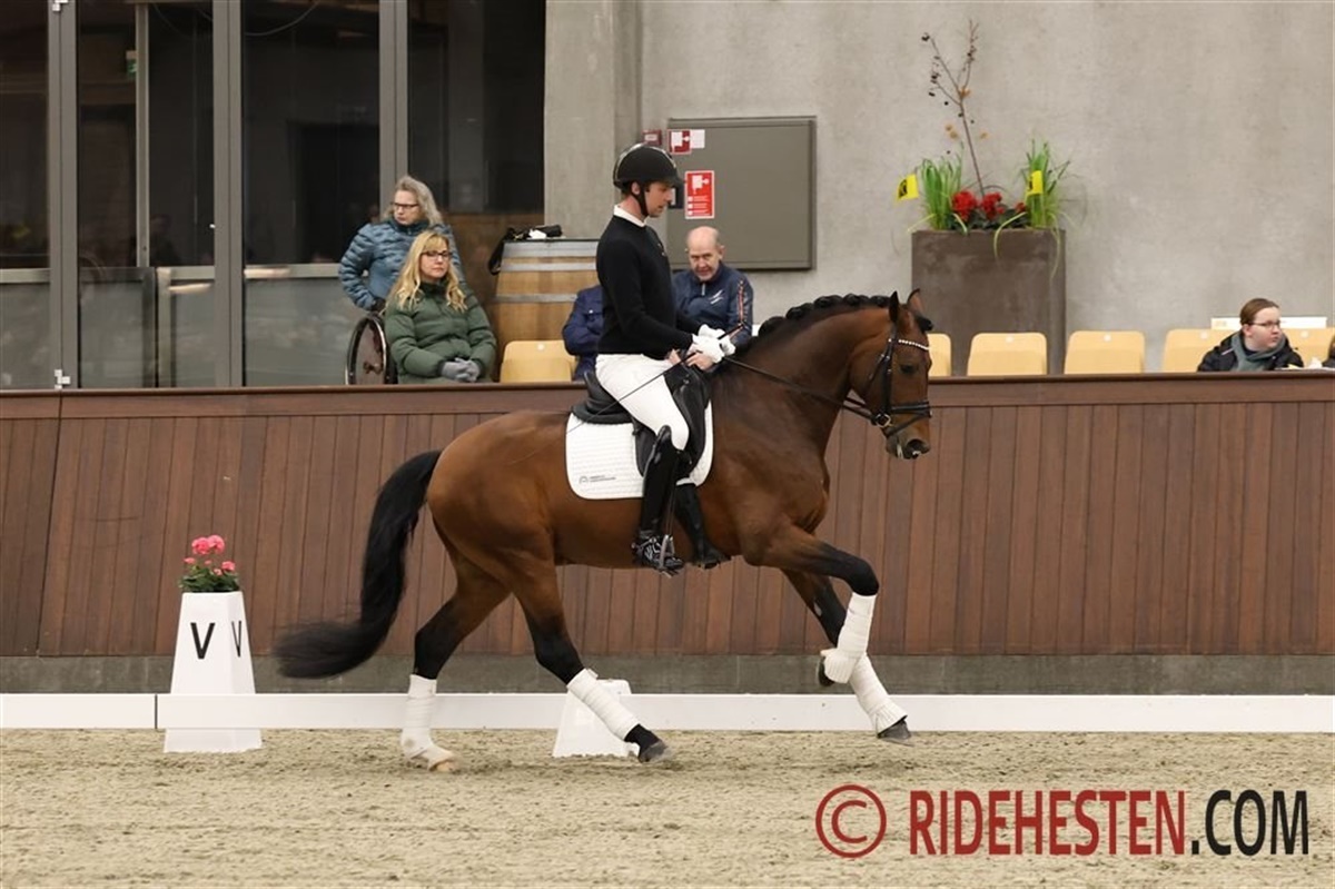 Første hest på banen var 5-årige Birkelys Diego e. Hesselhøj Donkey Boy/ Sam-Sam (opdr. Per Skov Safft), som er kvalificeret til unghestechampionatet i Herning, med Dennis i sadlen.