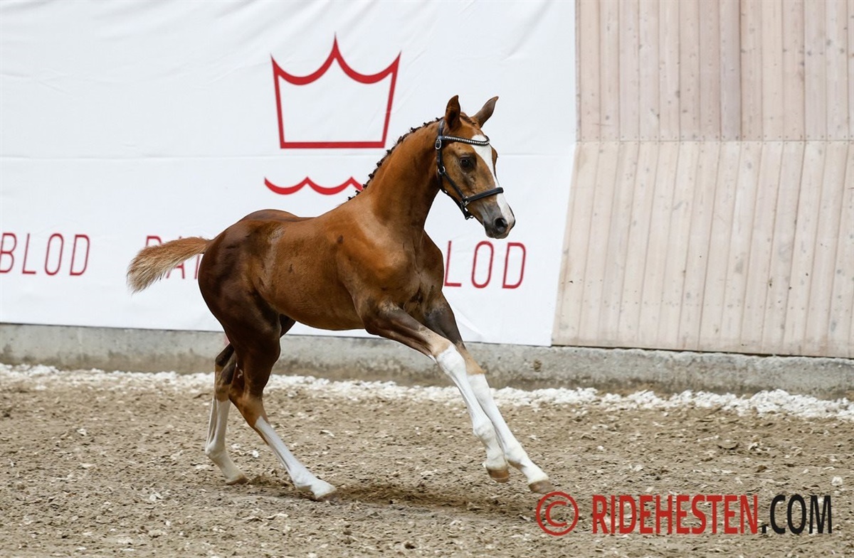 Et ultrafeminint, meget ædelt og charmerende hoppeføl. Hun har store rammer, god harmoni i kroppen og et dejligt udtryk. Sin unge alder til trods har føllet god ledmarkering og velstillede lemmer. Vi har set en galop, der er energisk, velbalanceret og regulerbar med masser af powerful. Det er et føl, som galoperer virkeligt igennem hele kroppen.
