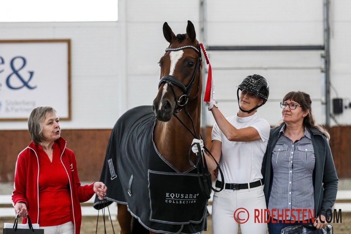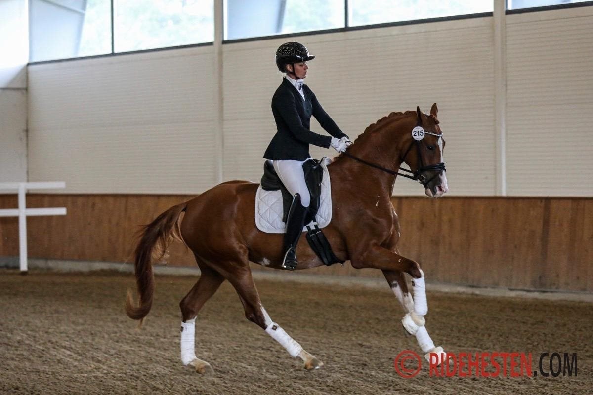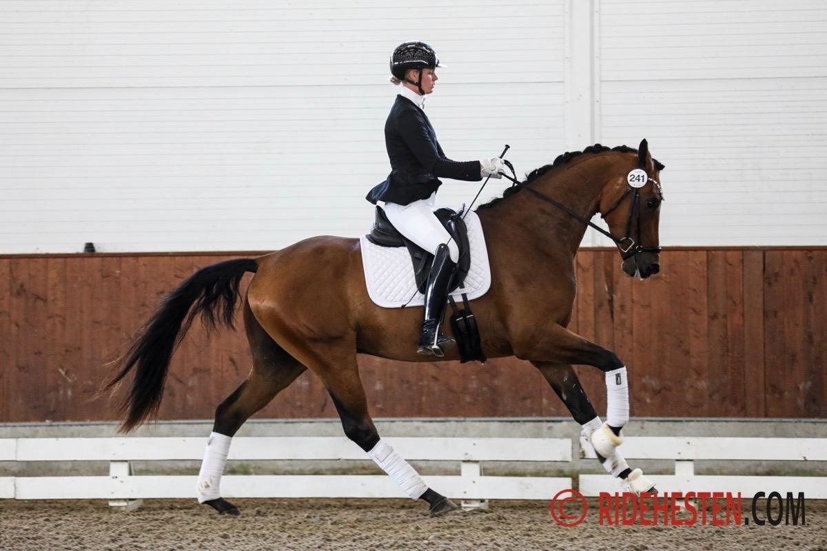 – En passende højtstillet hoppe med kønspræg, en dejlig feminin type. Taktfast og energisk skridt, traven er med god bæring og en galop som er den bedste gangart, vi har set på hoppen i dag, og det fik hun 8,5 for - samtidig viste hun god ridelighed.