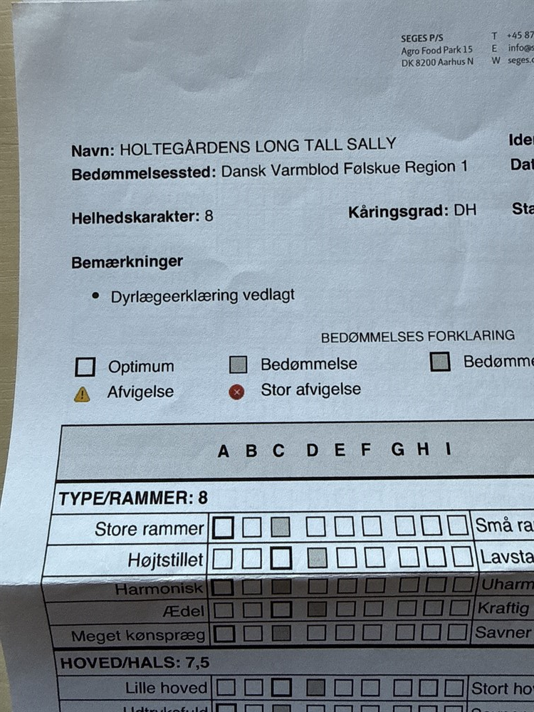 Utrolig smuk og velgående hoppe med gangarter ud over det sædvanlige. Kåret i DH. Karakterer 8-7,5-7-7,5-7-7-7,5-7,5-7. Helhedskarakter 8.