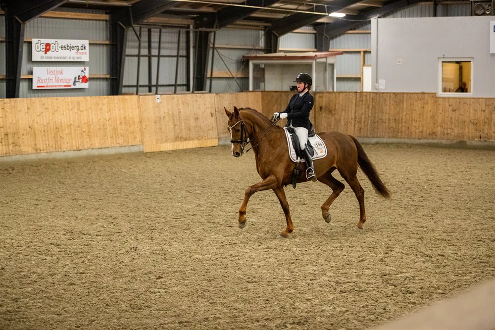 Ophelia er bygget opad bakke med en god mekanik. Hun er en følsom hest med tænding og drive hvor man ikke skal knokle som rytter. Hun har startet til og med PSG. Flere placeringer i MA. Dog lidt grøn på det niveau, men sikker og stabil i MB. Utrolig let i hånden og for schenklen. Hun kigger aldrig. Kan rides i skoven og uden sadel