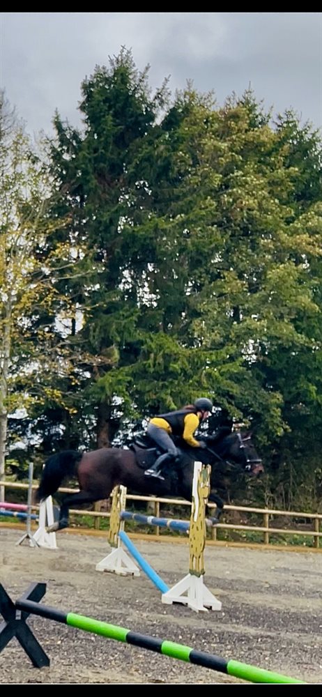 Hun er en traver, jeg selv har omskolet til ridehest. Hun springer op til ca. 100 cm, men hun kræver en rytter, der kan vise hende vejen og støtte hende hele vejen rundt på springbanen. Derfor er hun ikke en springhest til nybegyndere.