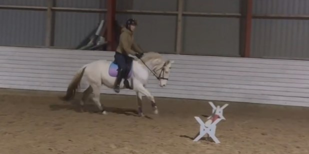 Braveheart har prøvet at springe et par cavalettier et par gange med rytter, hvilket han udviser interesse og gode evner for.