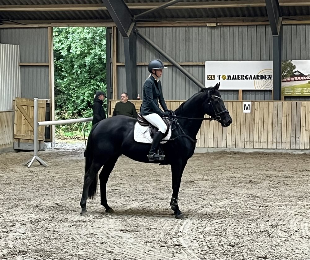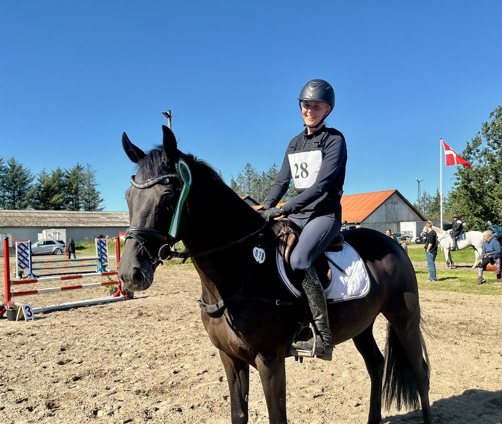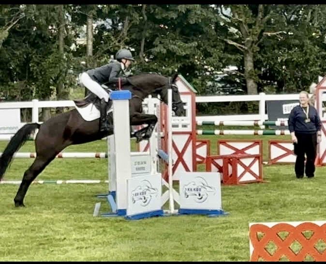 Har startet lidt små stævner i 80/90 cm spring og viser et fint spring med god teknik og lyst til at løse opgaven.