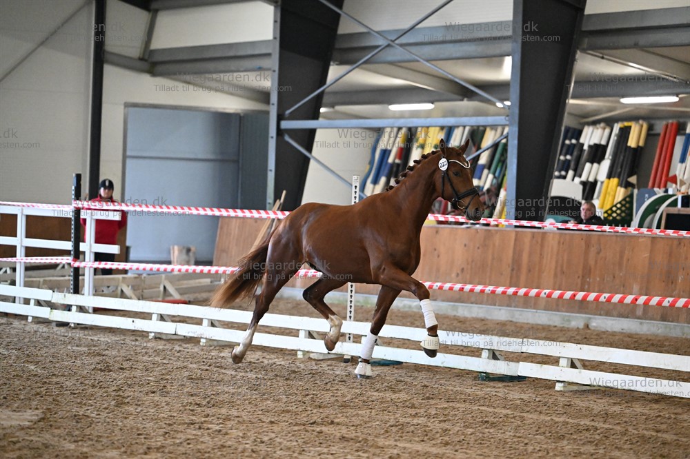 Langbenet, ædel, elegant og velformet unghest. Han er storrammet og maskulin med et godt udtryk. Han har en taktfast skridt god og energisk trav og en velbalanceret galop med god aktion.