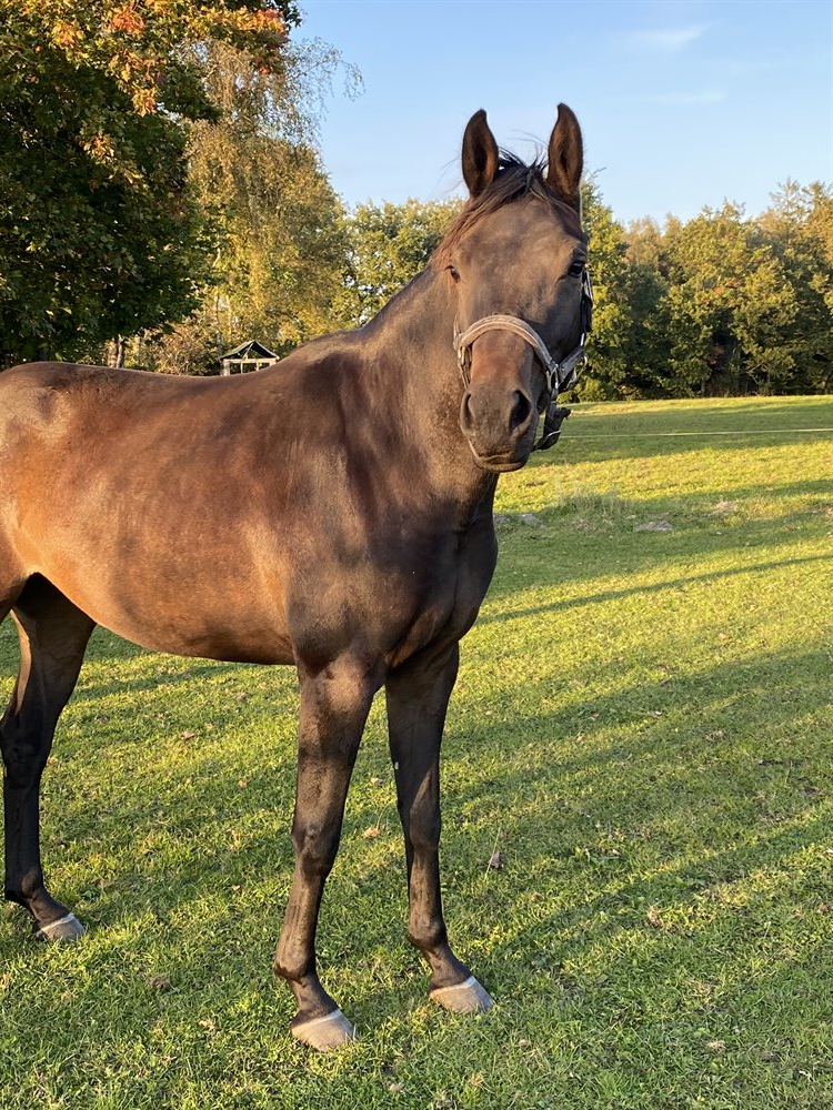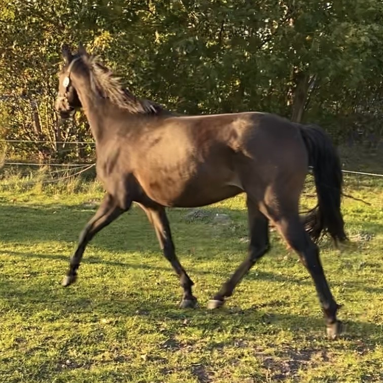 har gode bevægelser og god balance og har udviklet sig meget det sidste halve år. Hun er vandt til landbrugsmaskiner og en hund der kommer løbende rundt om hjørner.